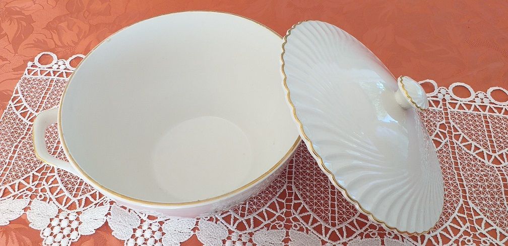 Un seul petit impact sur le bord du couvercle... retiré pour servir à table donc moins grave que si c'était sur le corps de la soupière. Toutefois, le prix en tient compte.