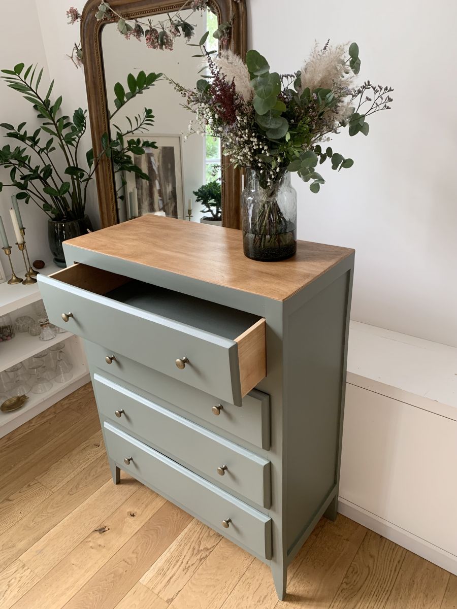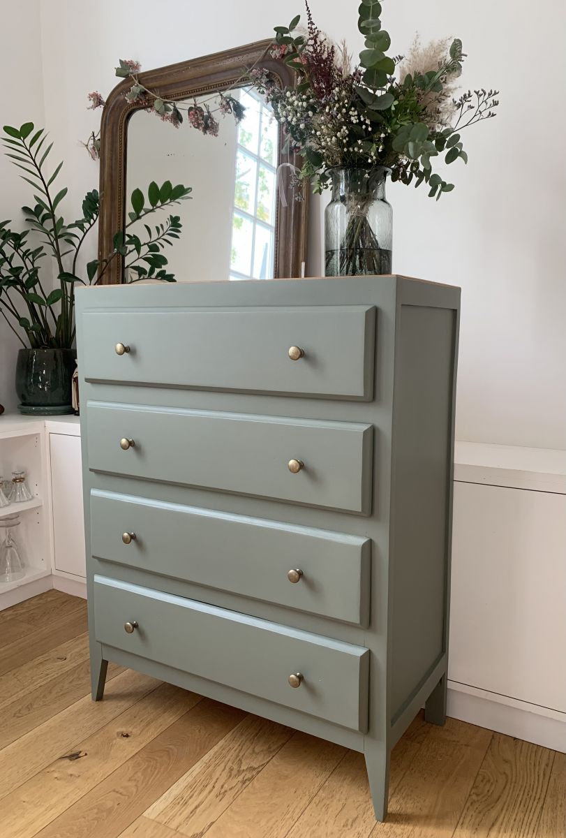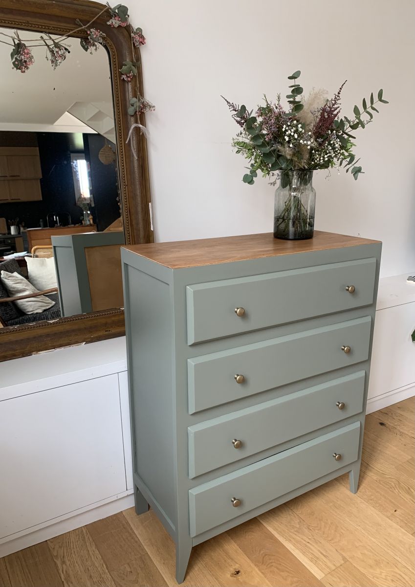 Charmante et élégante commode des années 50 avec de jolis pieds en biais.