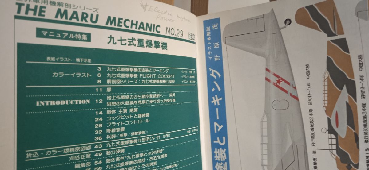 On the front cover is printed Mitsubishi Army Type 97 Heavy Bomber (ki-21). THE MARU MECHANIC 1981 followed by 7 in a yellow square then a large 29. The rest of the writing is all in Japanese.
