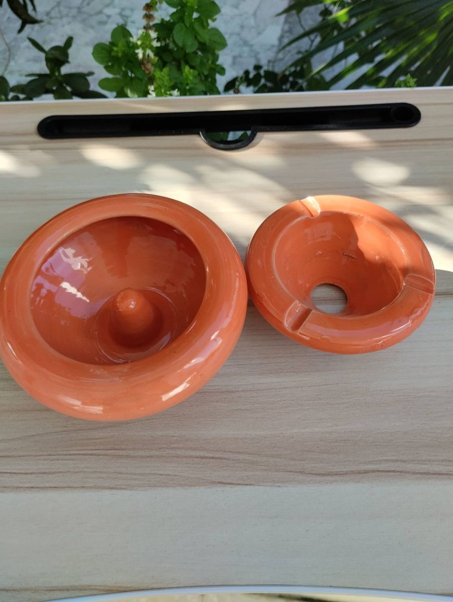 Cendrier en poterie Orange tunisienne, Cadeau fumeur