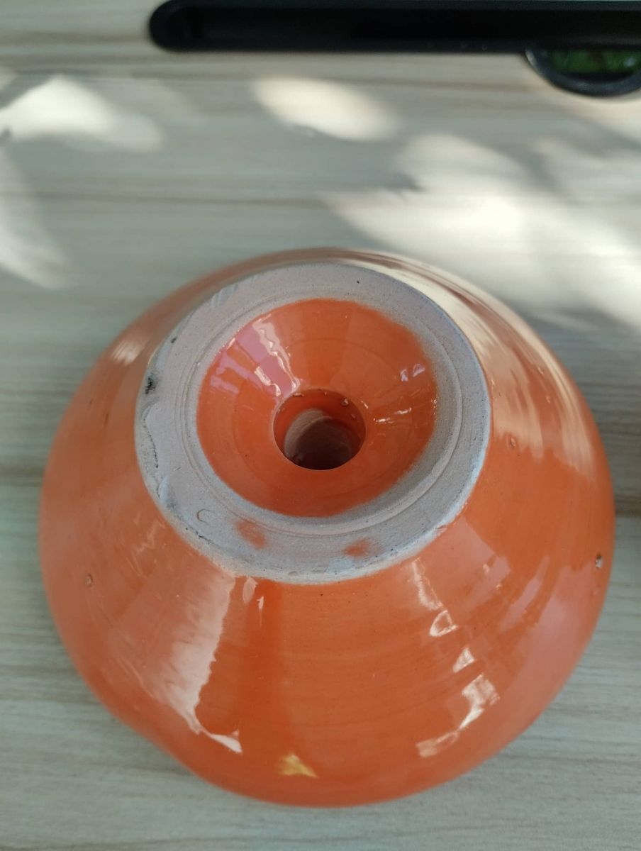 Cendrier en poterie en terre cuite orange.
