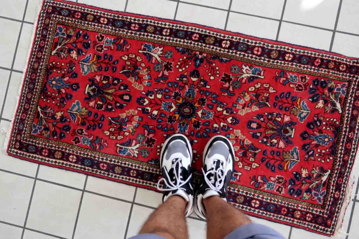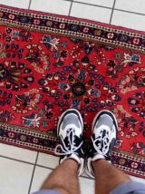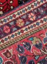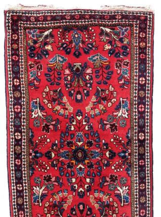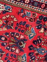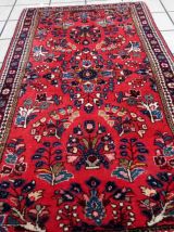 Handmade vintage Sarouk rug in traditional design. The rug is in red color. The rug is from the end of 20th century in original good condition.