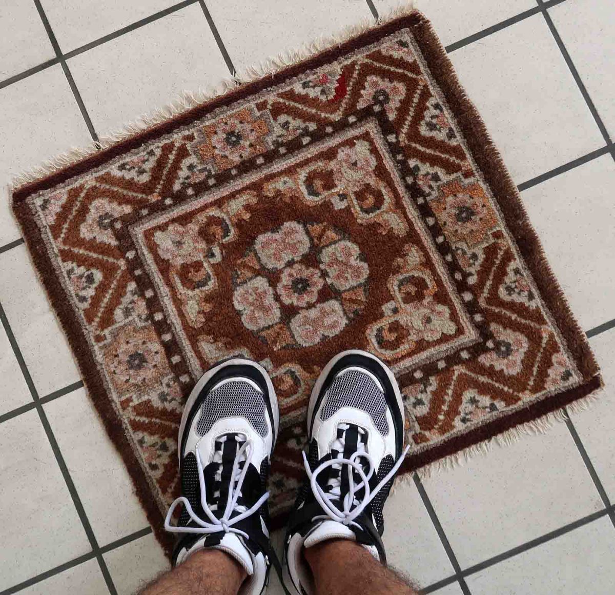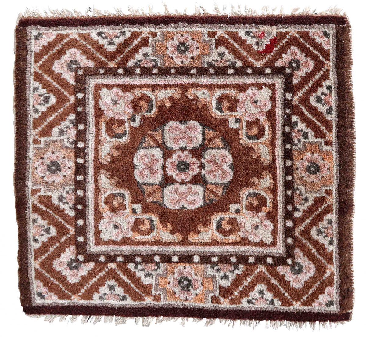Handmade vintage Mongolian collectible mat in brown shade. The rug is from the middle of 20th century in original good condition.