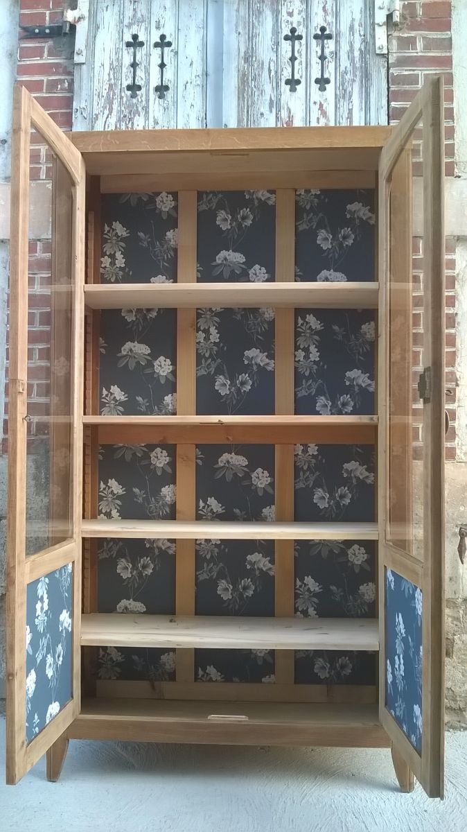 Le fond intérieur et le bas intérieur de portes a été tapissé d un papier floral