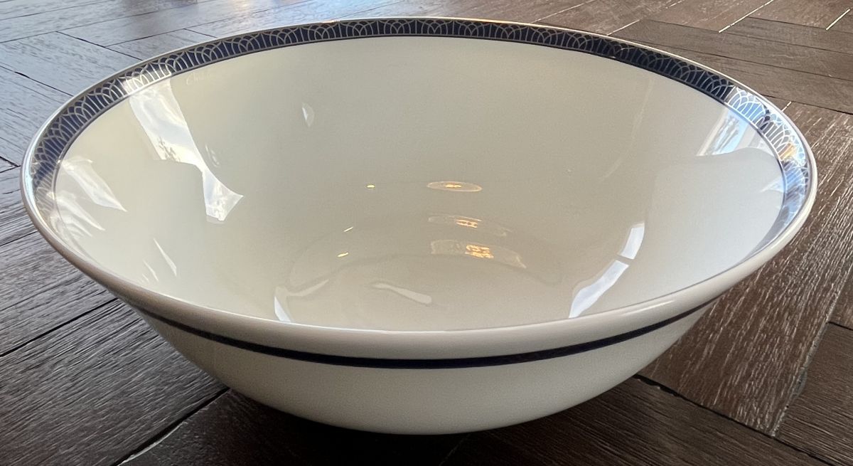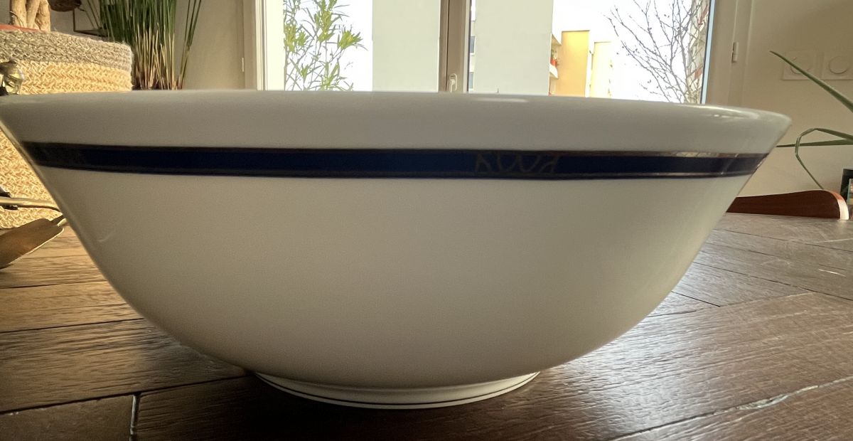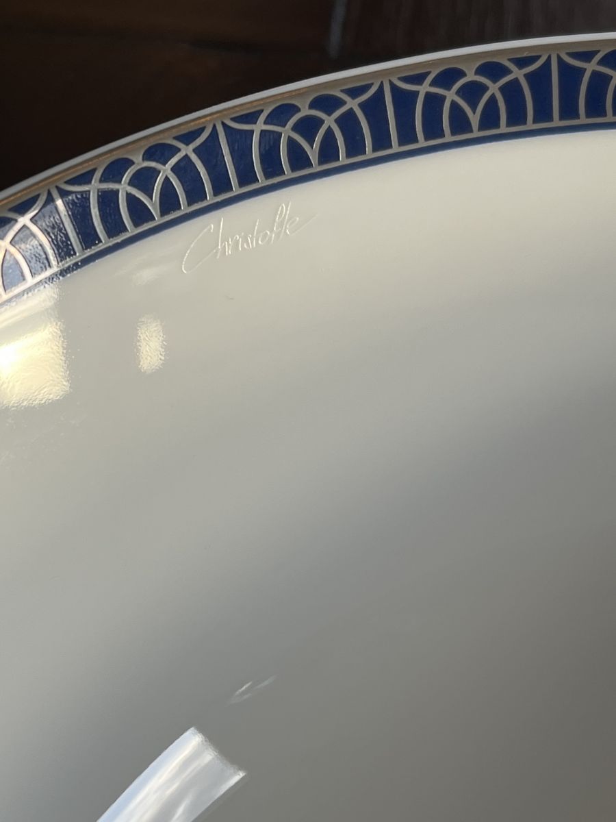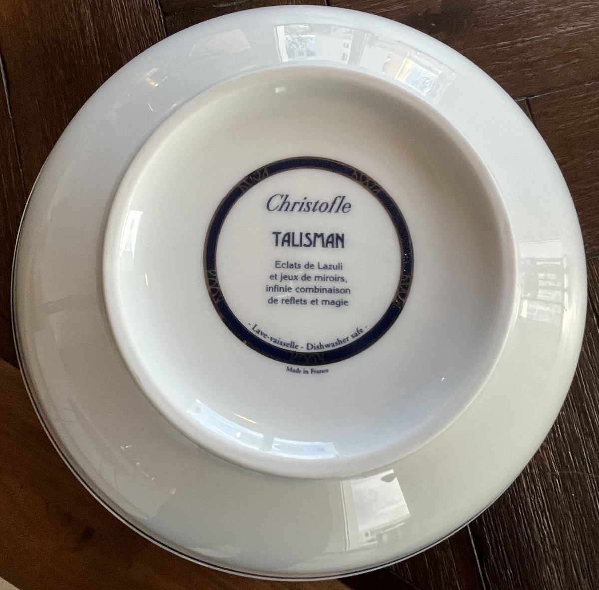 Très beau Saladier Christofle en parfait état. Comme c'est écrit dessous, il s'agit de la collection Talisman avec éclats de Lazuli.