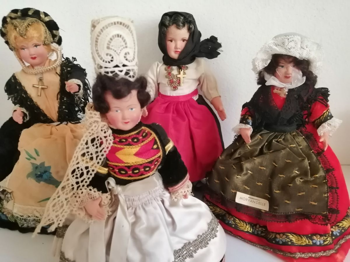 lot 4poupees celluloid lot et 15 cm 18cm(petit coli)