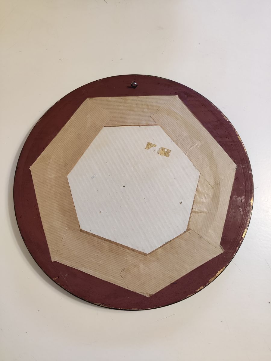 miroir mural rond en bois noir et doré avec crochet à l'arrière