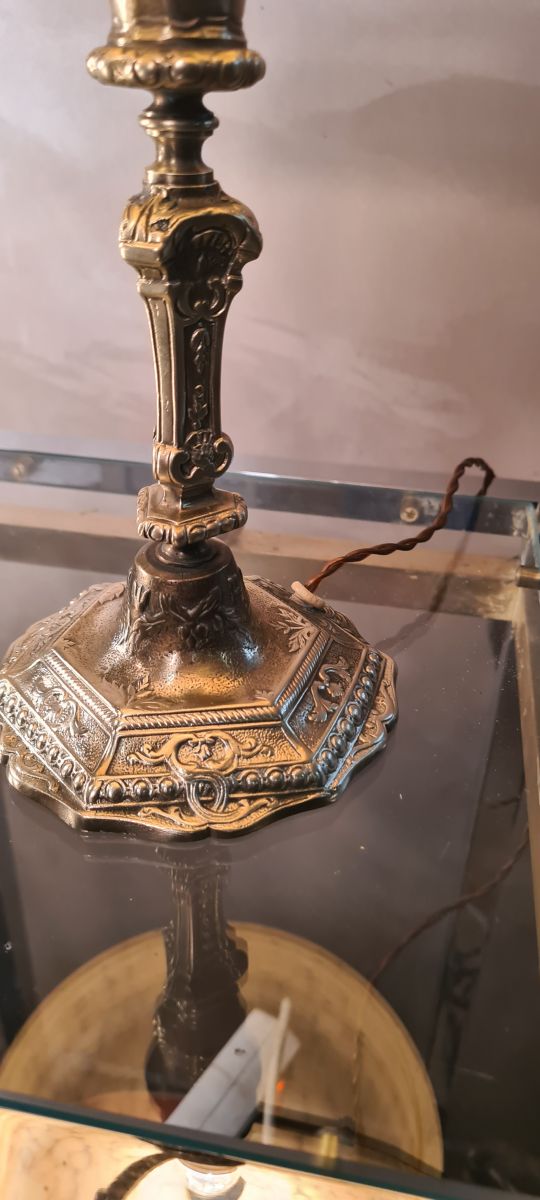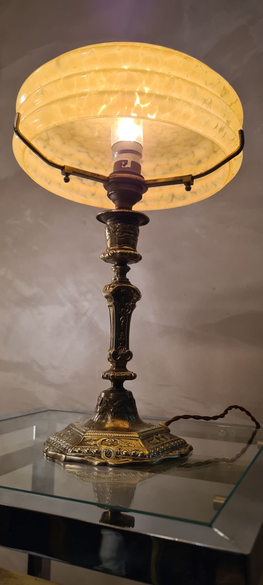 lampe bronze art deco tres belle 1920 a 40 avec opaline cl