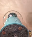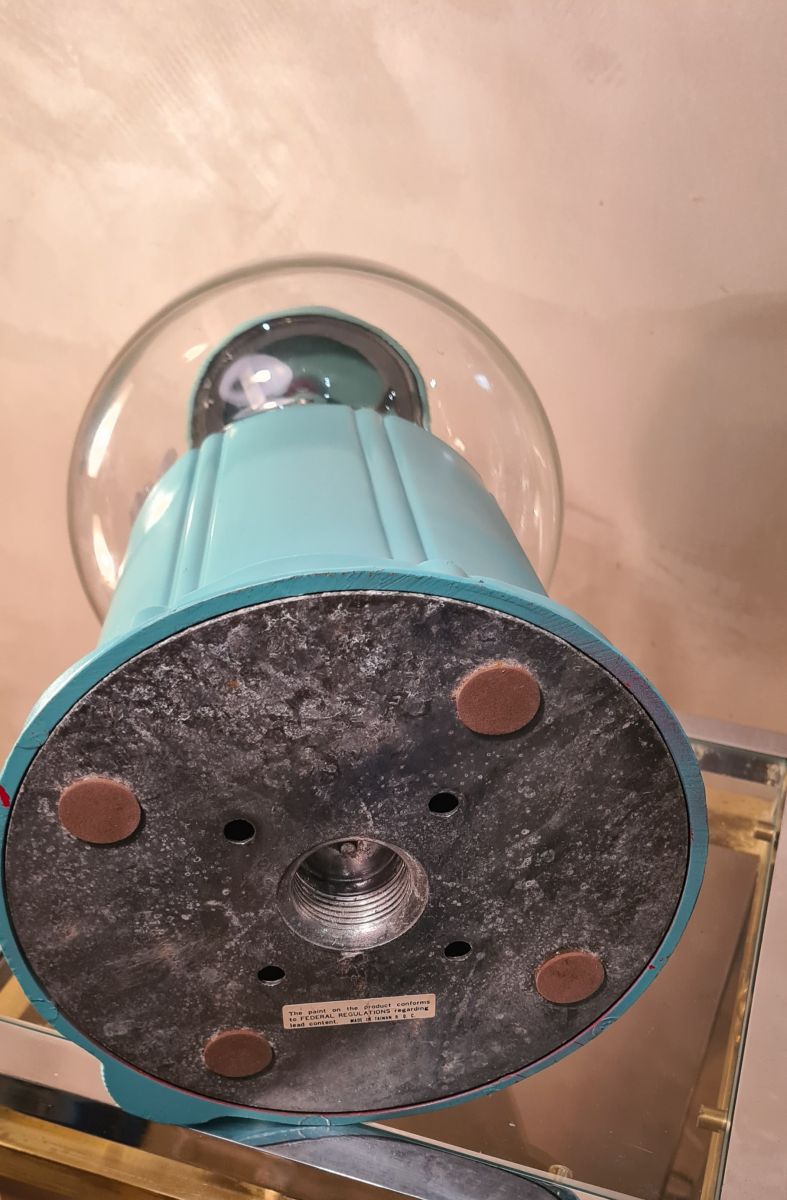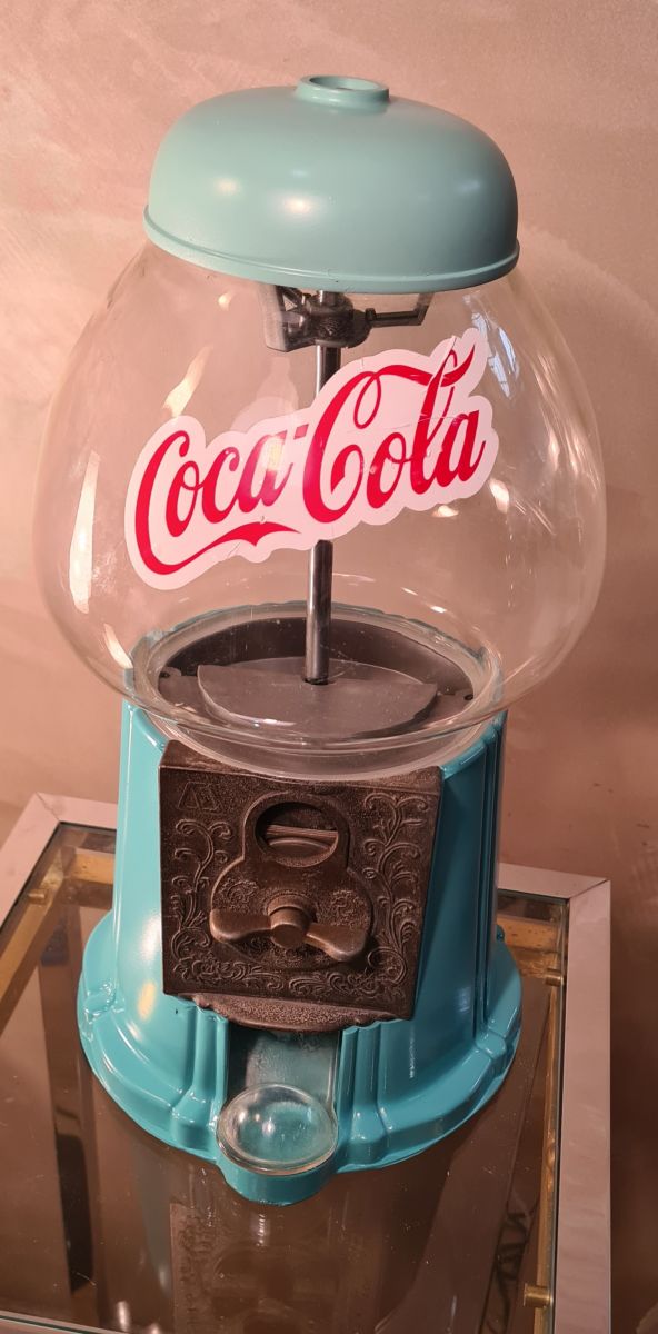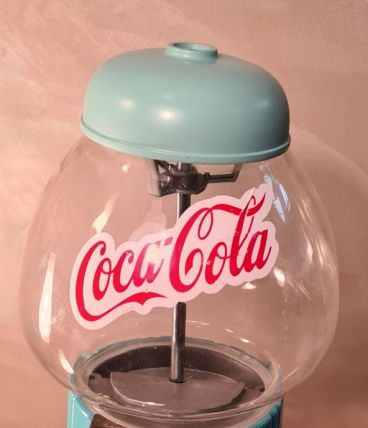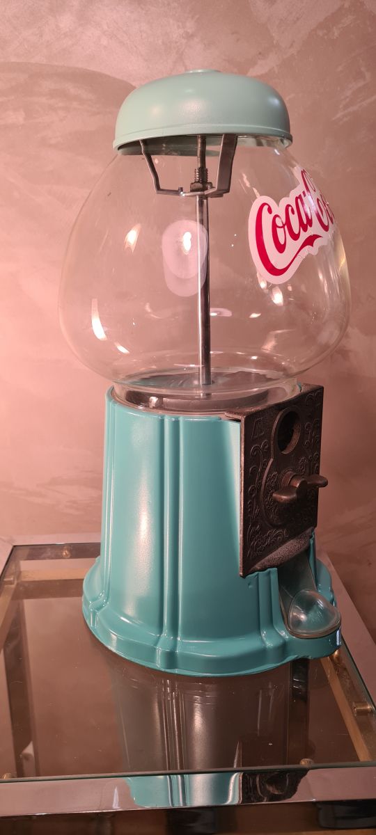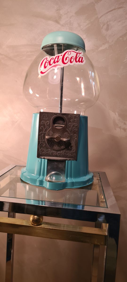 xl Distributeur de bonbon, chewing gum, cacahuète verre et metal couleur 2 tons de turquoise 28x20