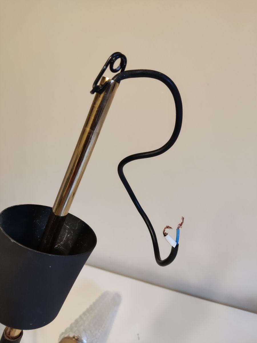 lustre vintage 8 feux en métal doré et noir Arlus des années 50