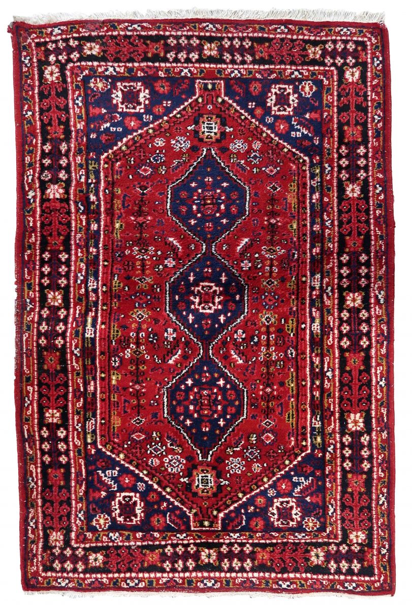 Handmade vintage Shiraz rug with medallion design. The rug is in original good condition from the end of 20th century.
