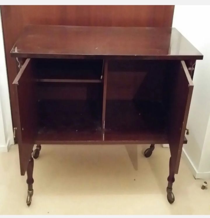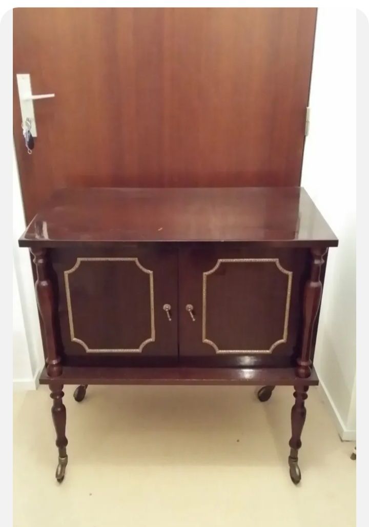 ELEGANT ET COMPACT PETIT MEUBLE DE RANGEMENT VINTAGE type BUFFET BAS 2 PORTES ou BAR monté SUR ROULETTES