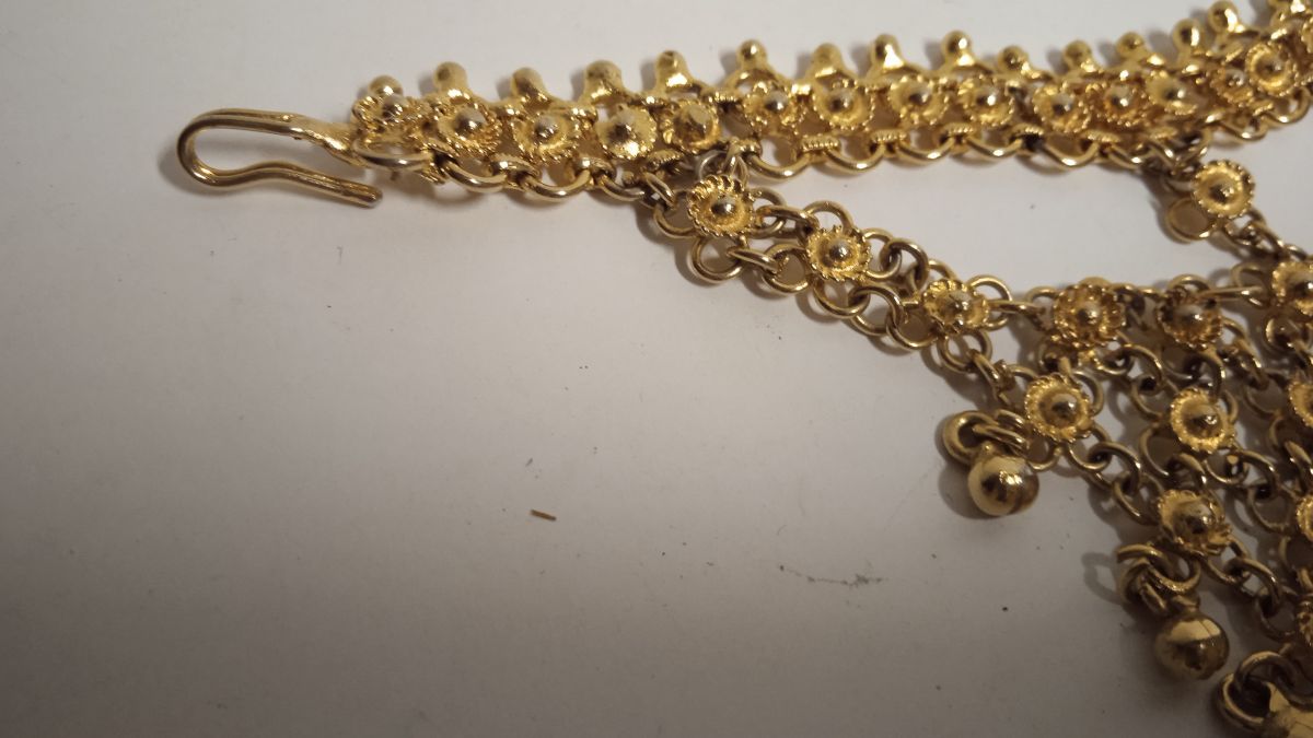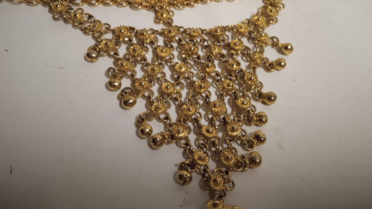 C'est un métal doré qui est finement travaillé.
