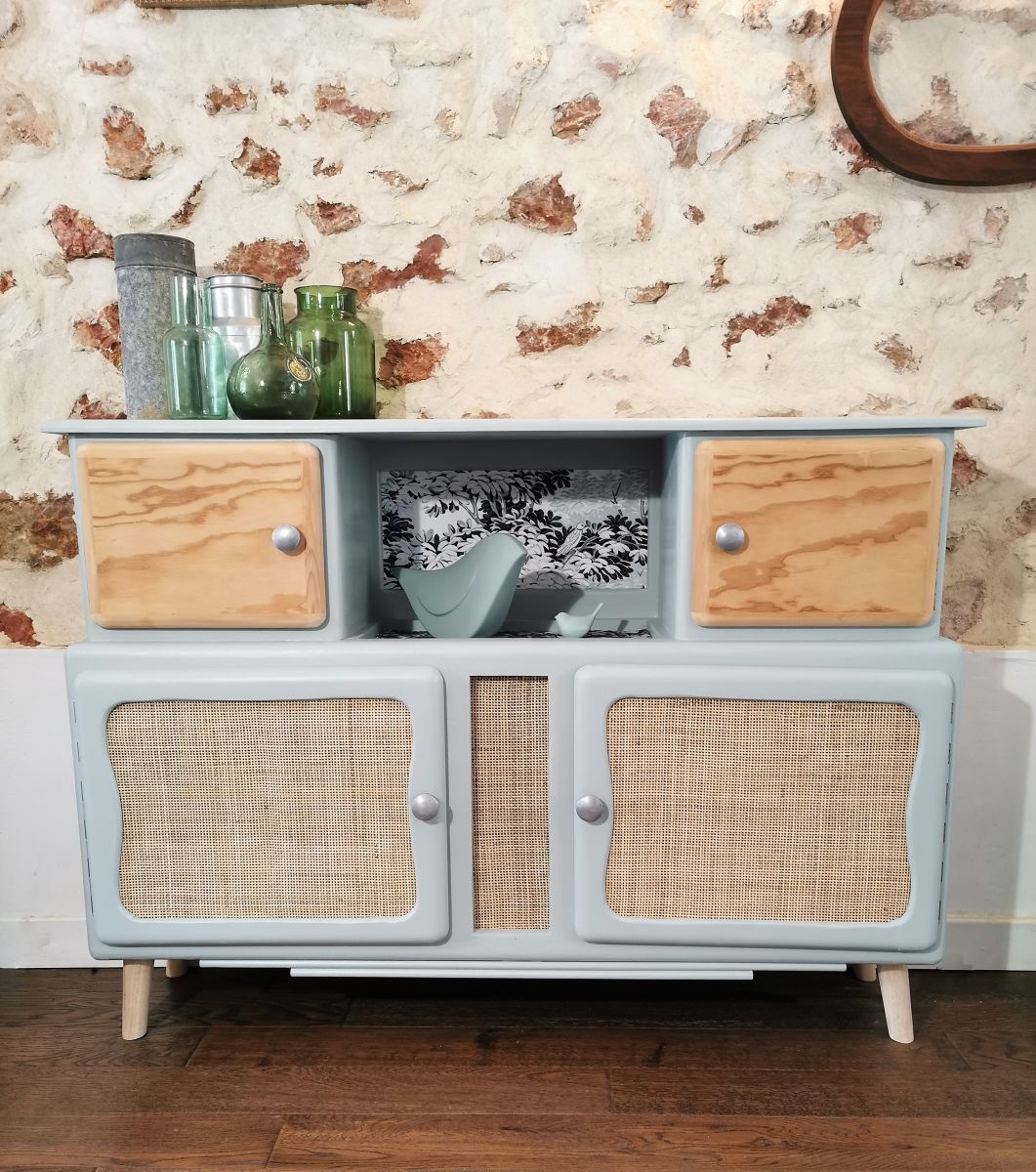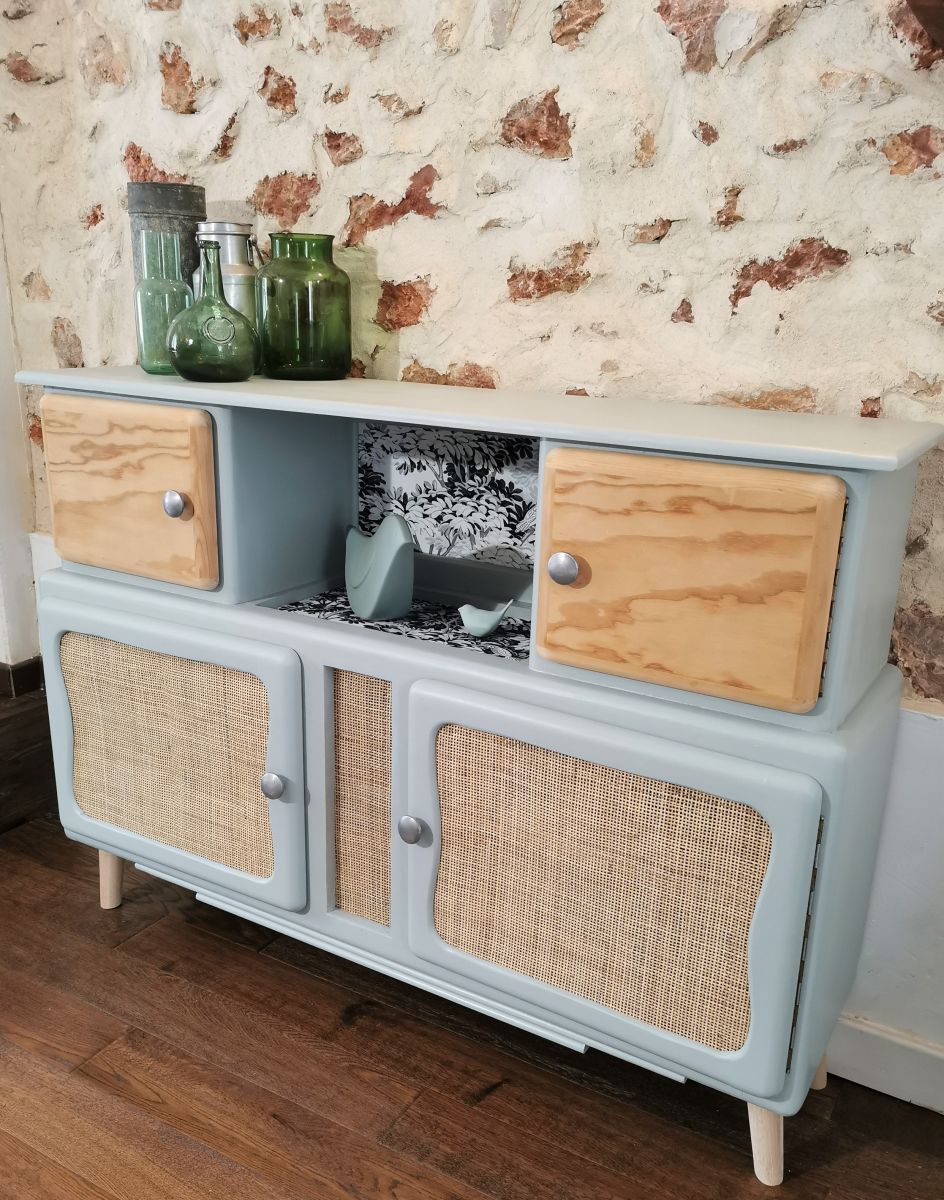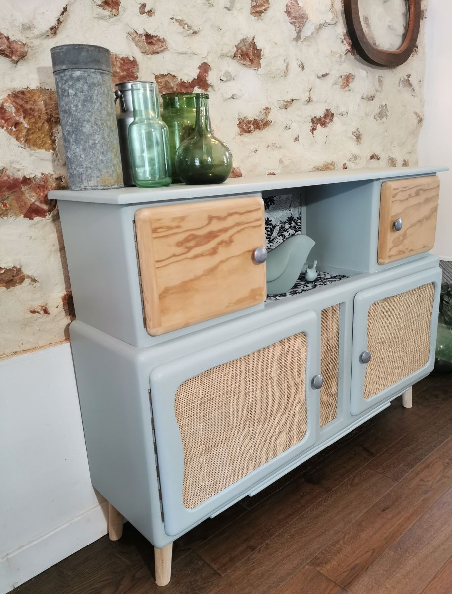 Ce haut de buffet Mado a été détourné pour devenir un joli buffet sur pied incliné.