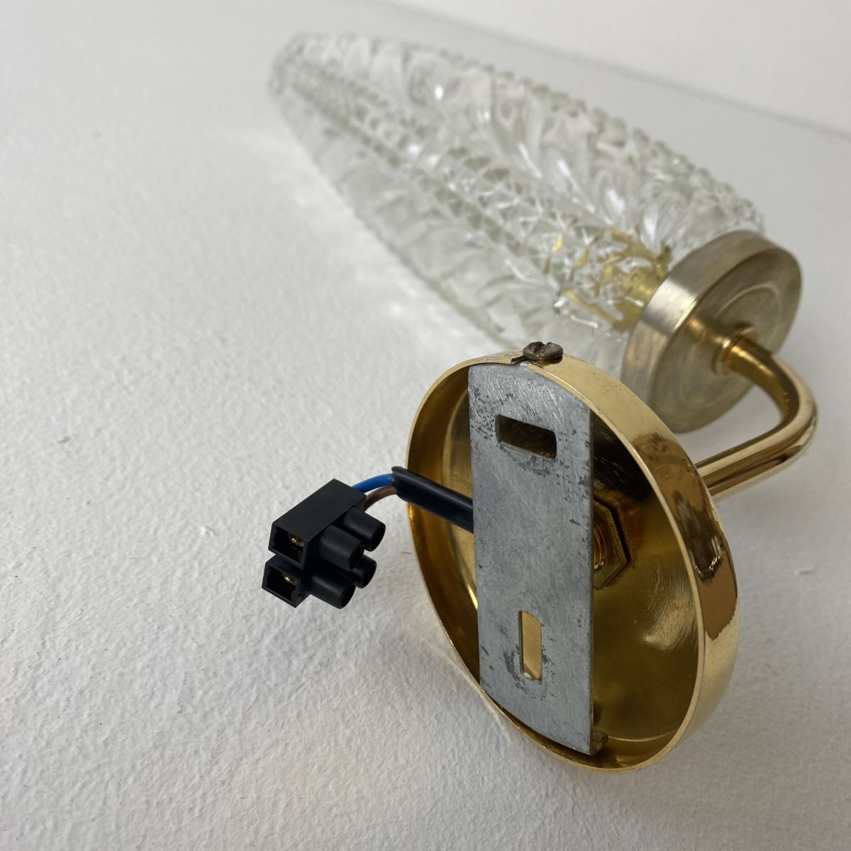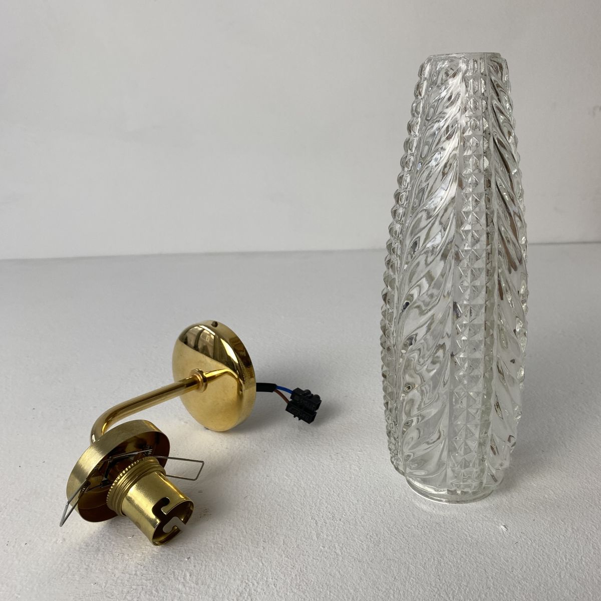 2 anciennes applique en verre et métal doré des années 1950-1960. Belle lumière.