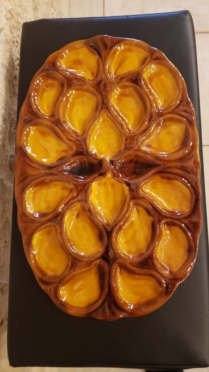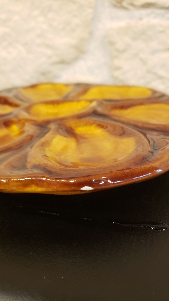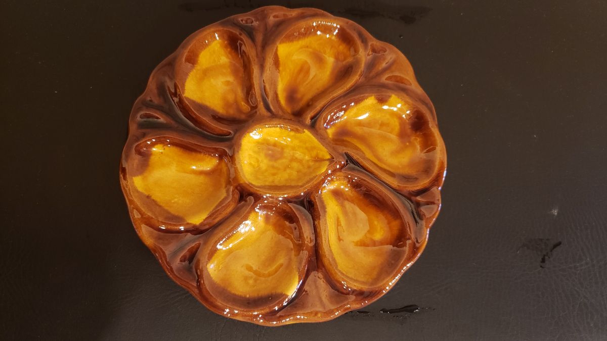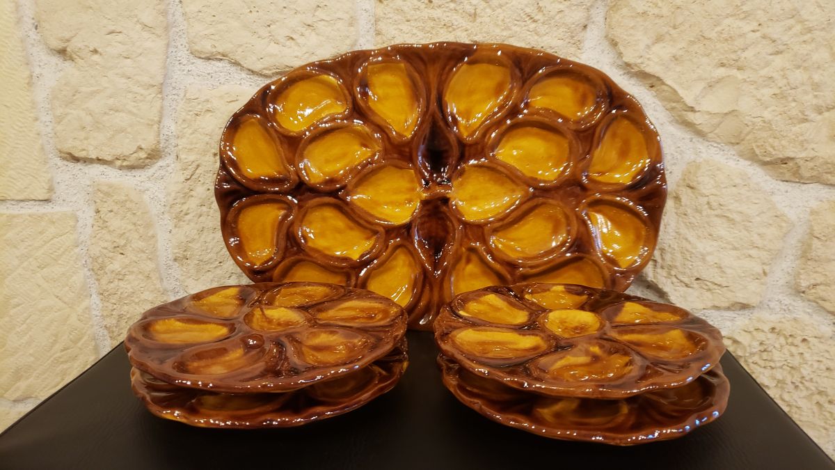 Service à huîtres vintage des années 1960 a le plus délicieux glaçage brun chocolat et caramel signé VALLAURIS