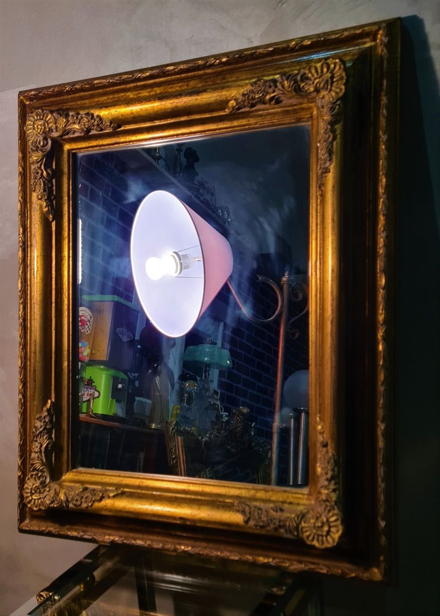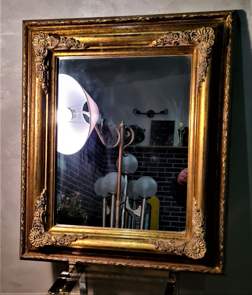 bonsoir , rien de flashy dans se miroir les photos le represente bien ,,,,, année ? desolé,,, belle patine et tres beau rendu,,,,,