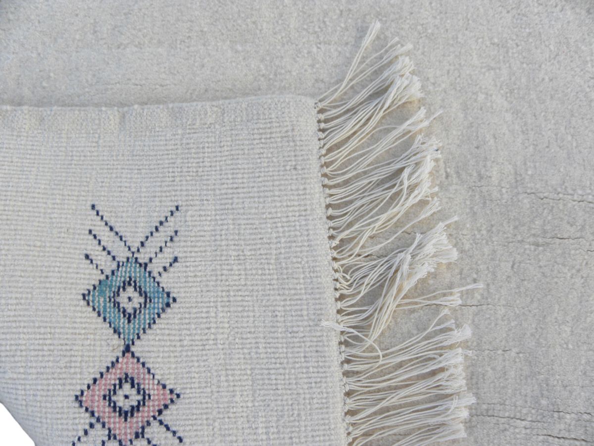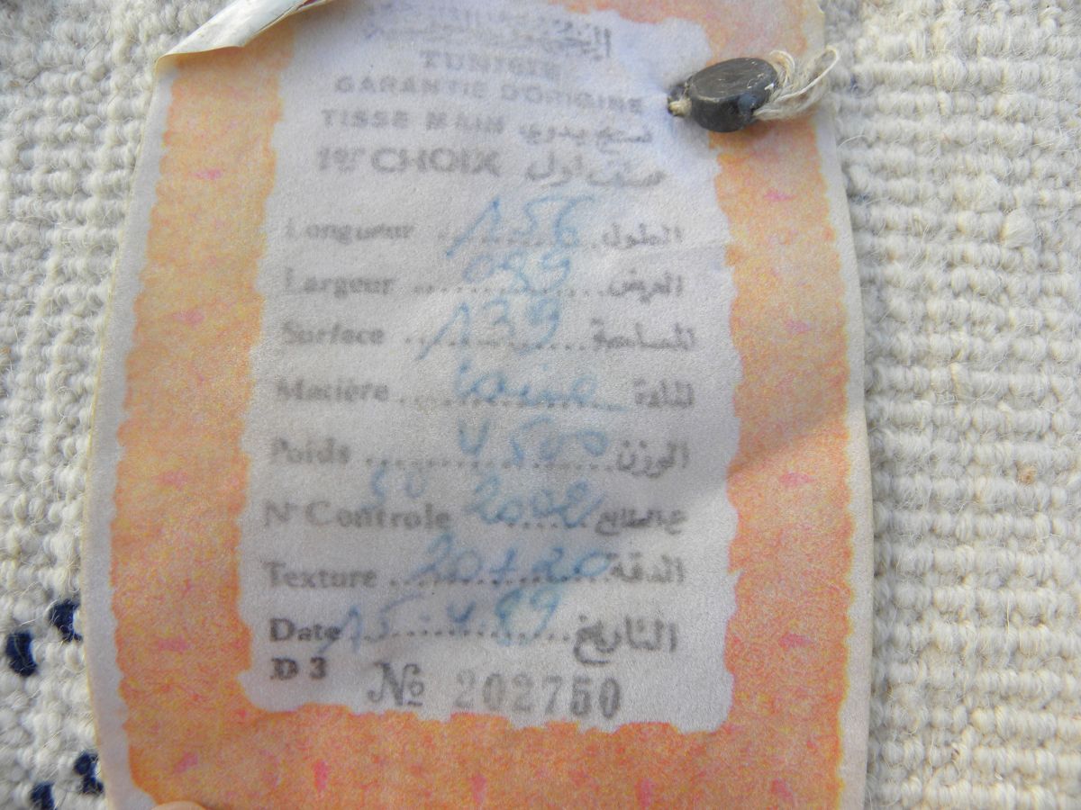Veuillez noter que tous les tapis sont vintage et faits à la main et peuvent présenter des irrégularités. Un certificat de garantie attestant que le tapis est l'article de premier choix et livré à la main par l'office national de l'artisanat de Tunisie. Chaque tapis sera soigneusement emballé pour une expédition internationale.