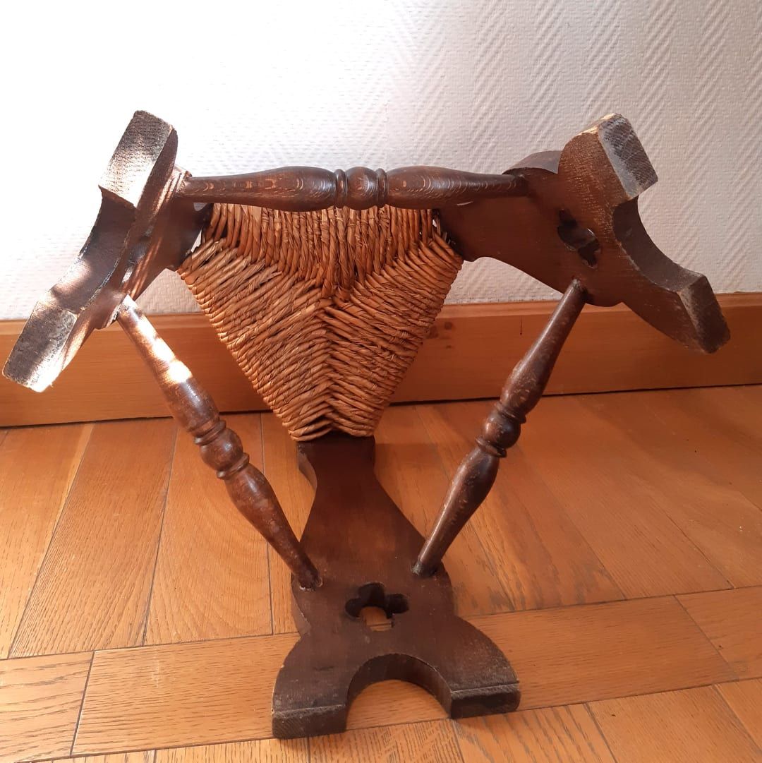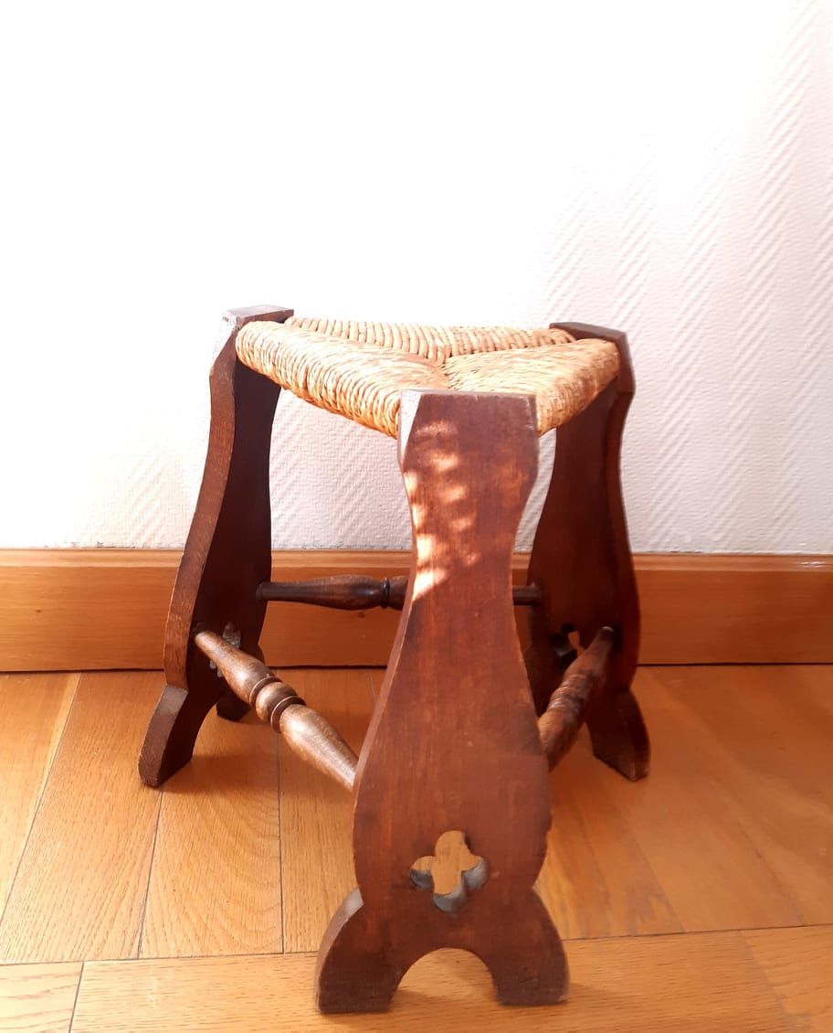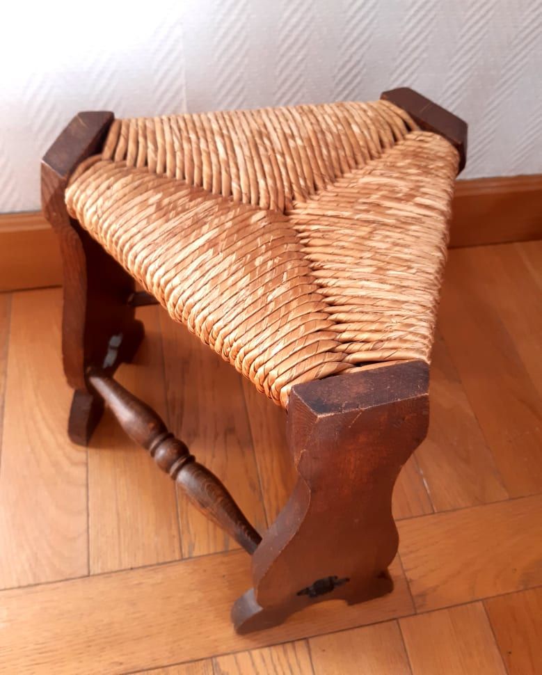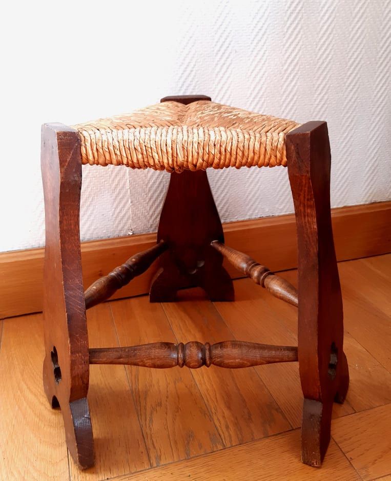 Tabouret de ferme paillé style médiéval