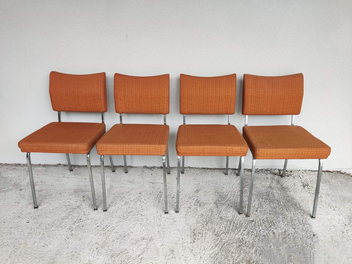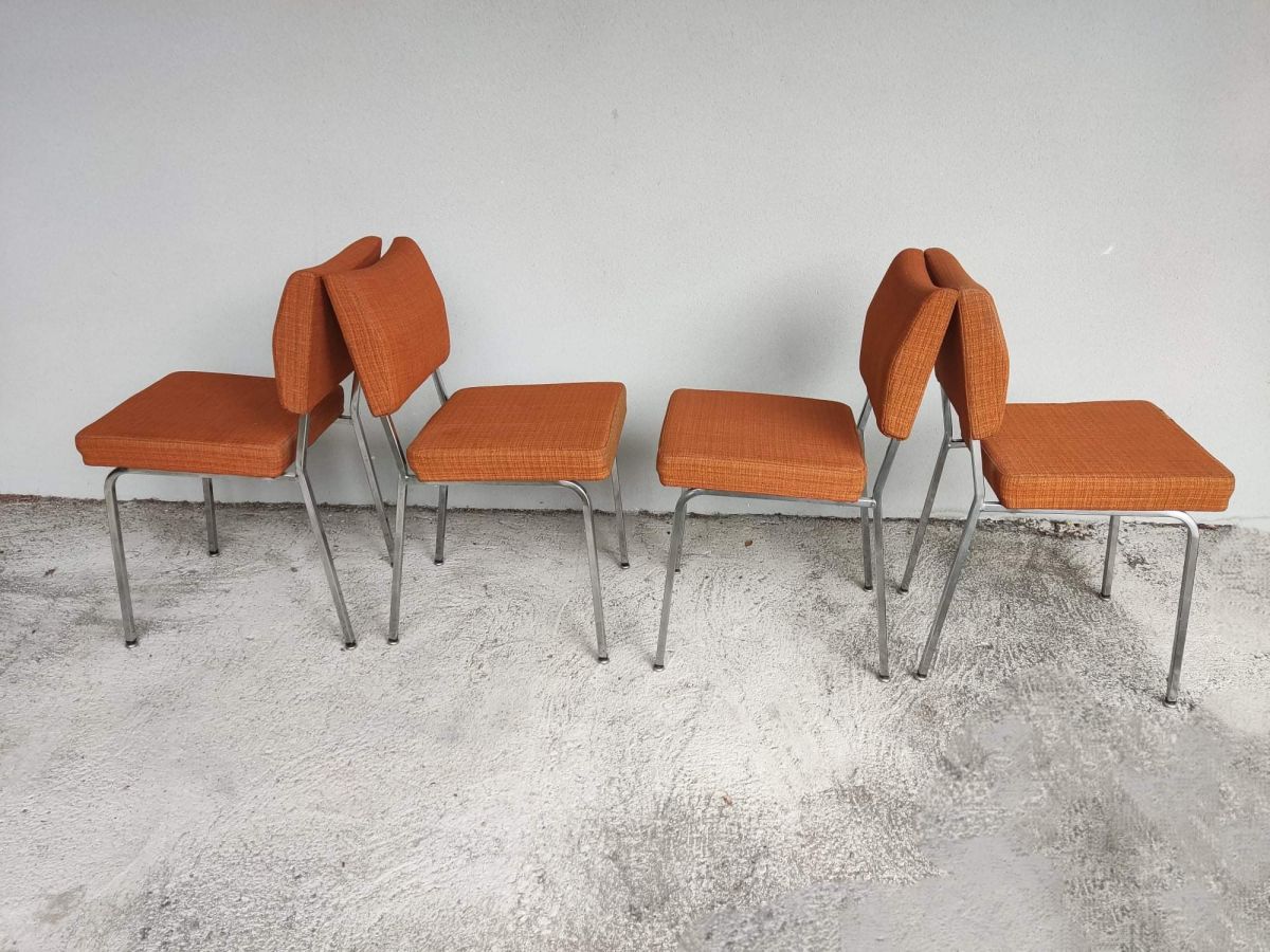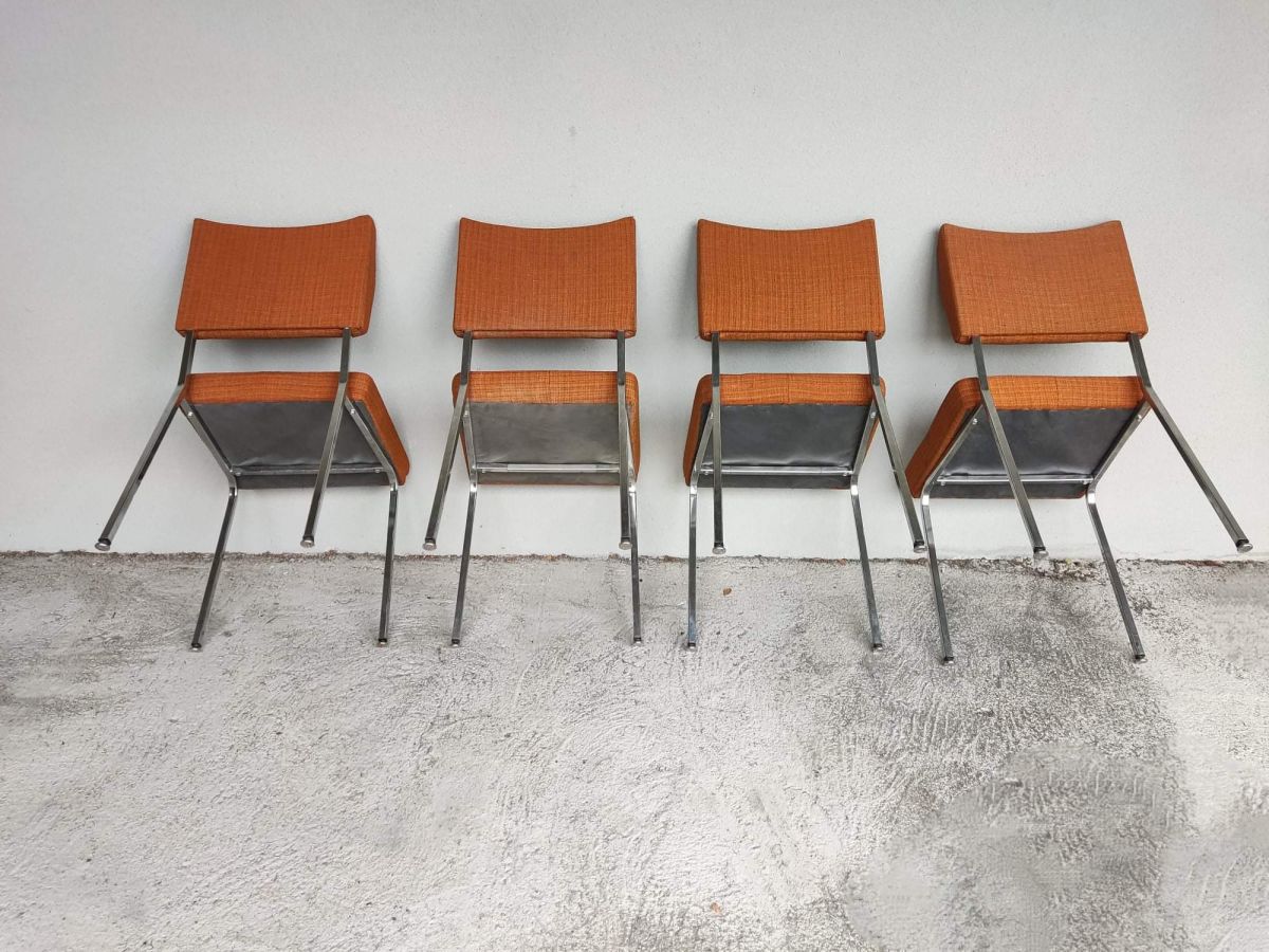 lot de 4 chaises vintage en tissu orange chiné rayé