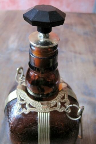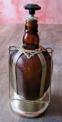 Très belle boîte à musique en verre fumé en forme de bouteil