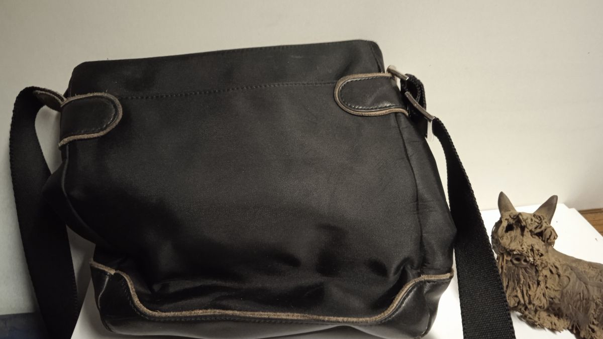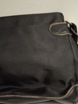 L'extérieur est en nylon/polyester avec (faux ?) cuir. Haut zippé