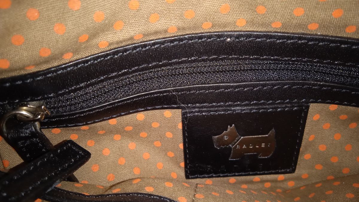 Le nom RADLEY est estampillé à l'extérieur et à l'intérieur, c'est à nouveau le nom mais avec l'emblème Scottie Dog.