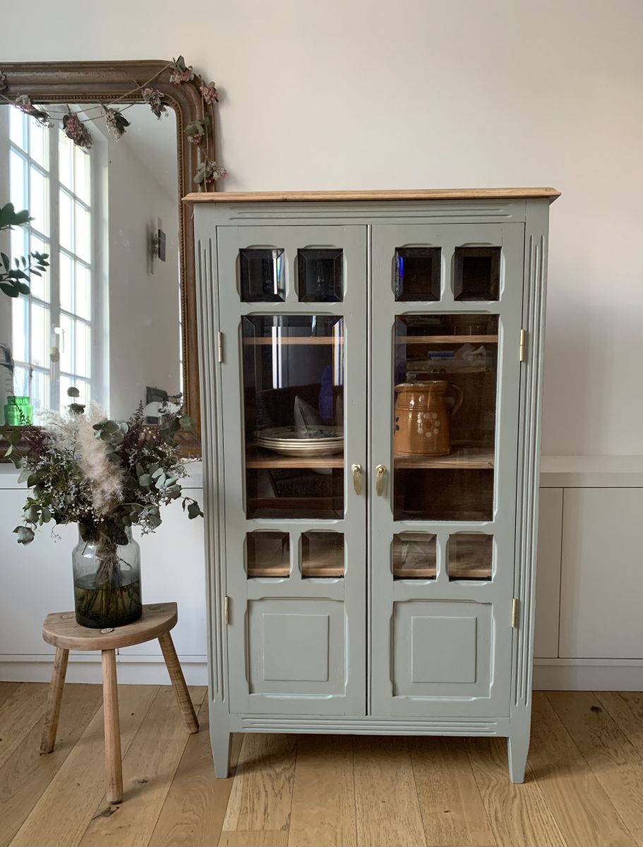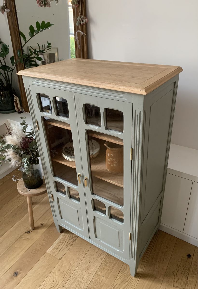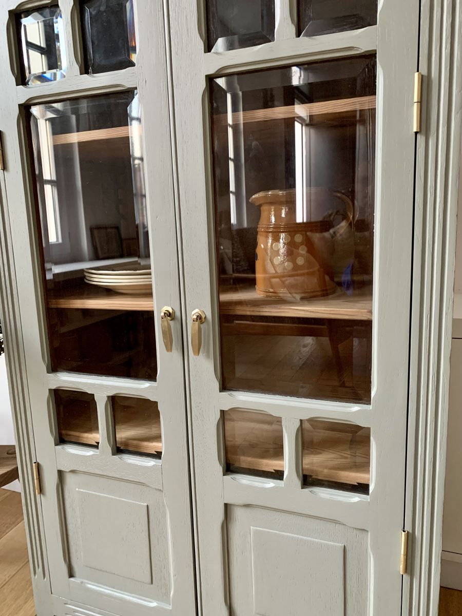 Elégant buffet vitré des années 30/40 avec de jolis pieds en biais.