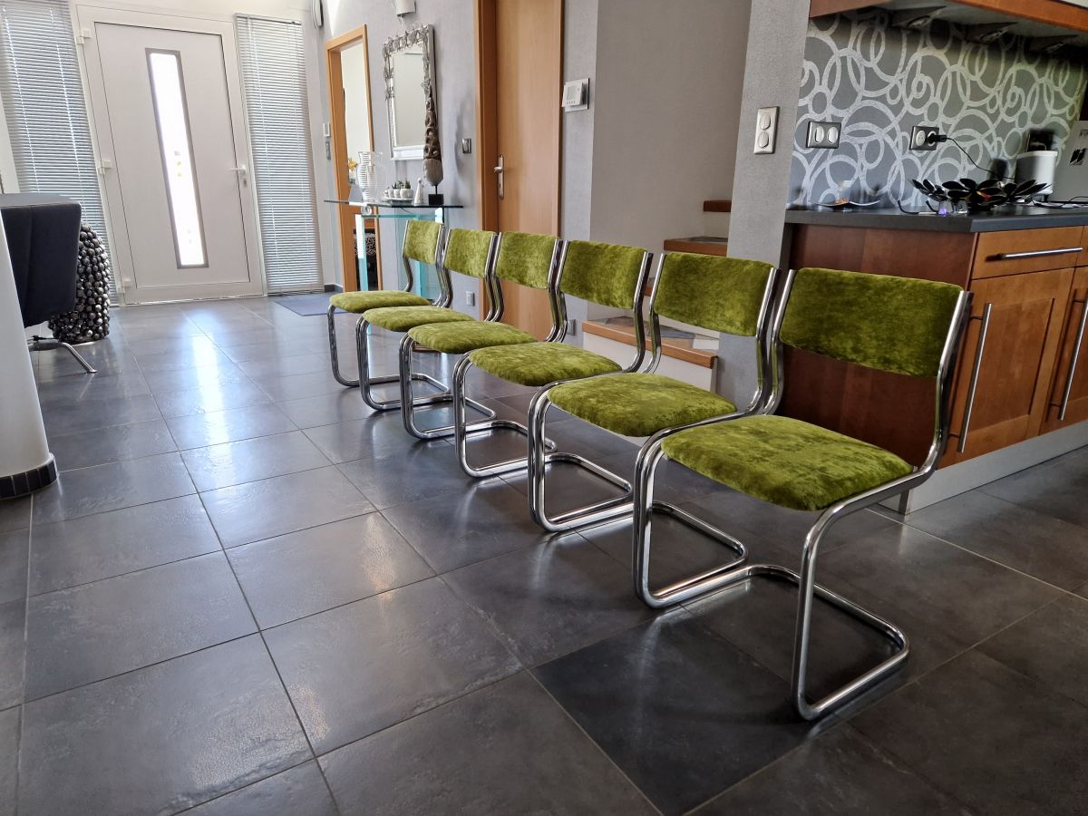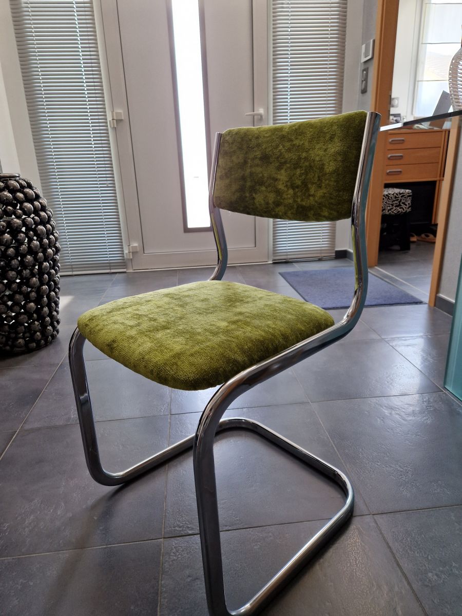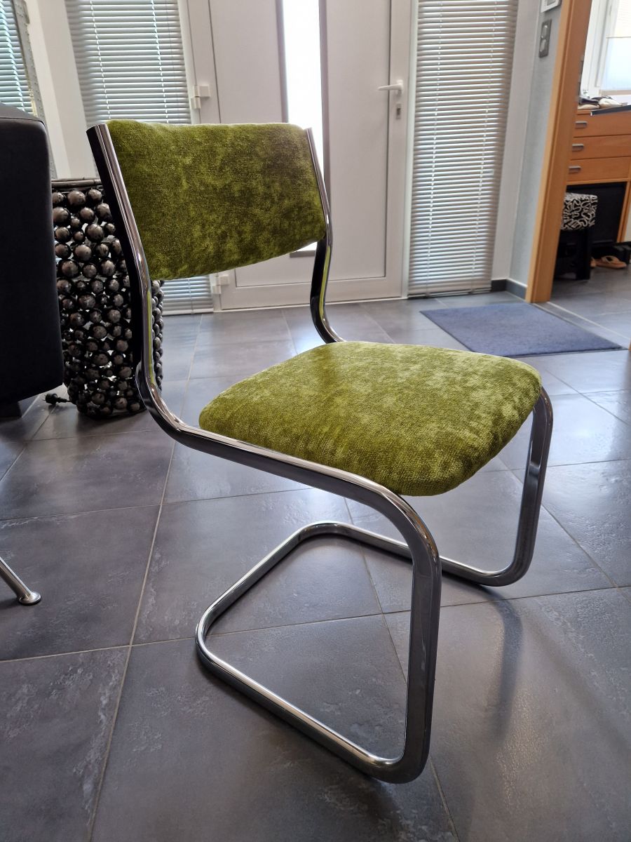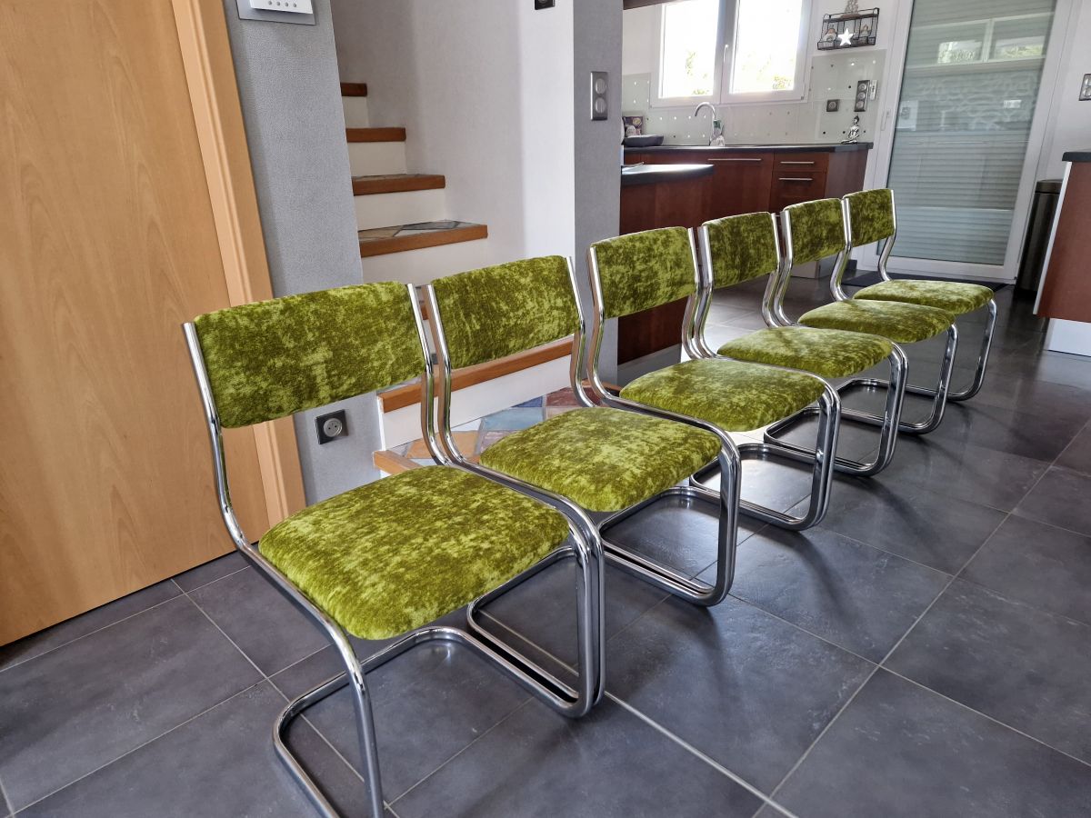 6 chaises des années 1970, design italien totalement restaurées par un tapissier décorateur. La restauration n'est pas totalement terminée. Possibilité de voir et de réserver. Estimation par antiquaire de 1080 euros