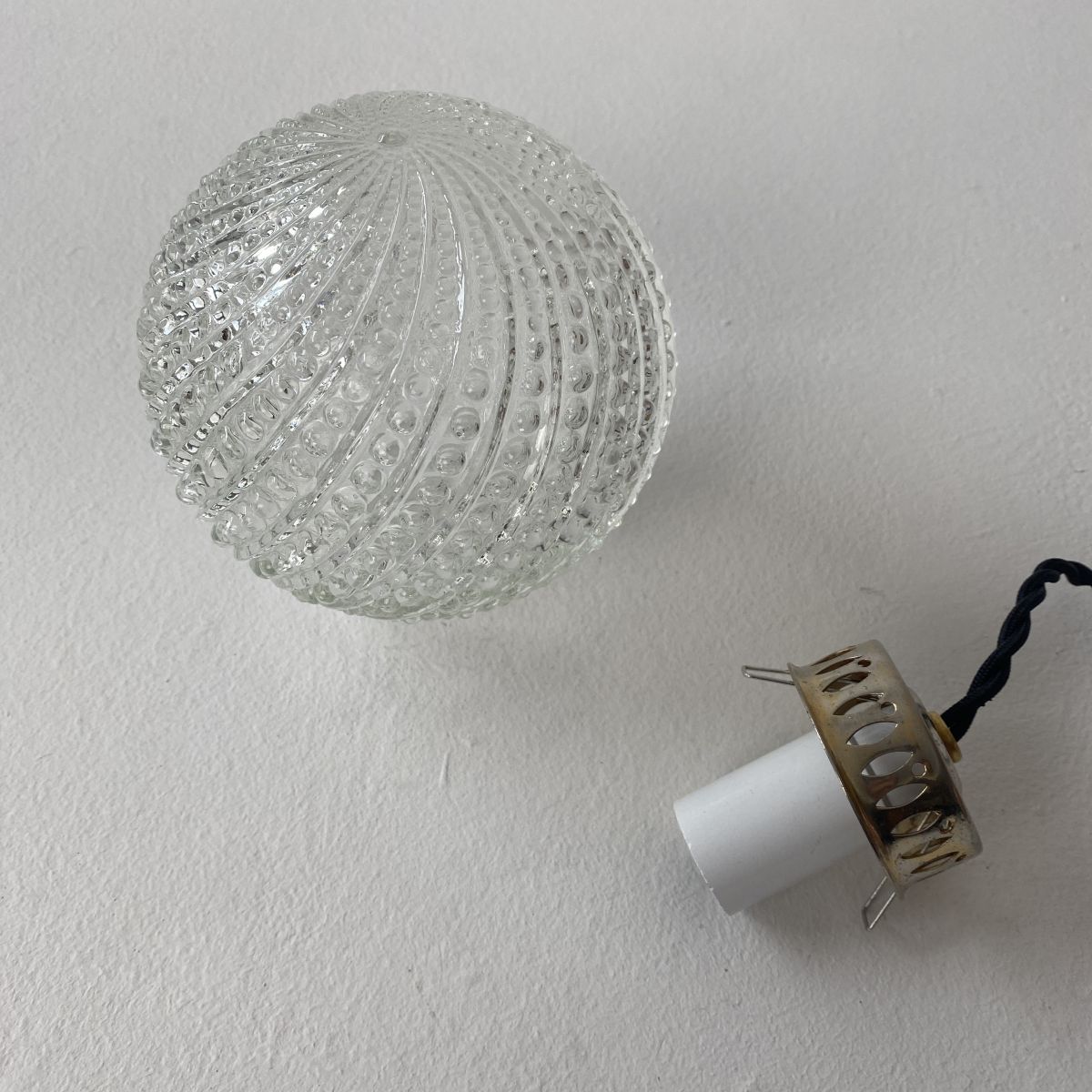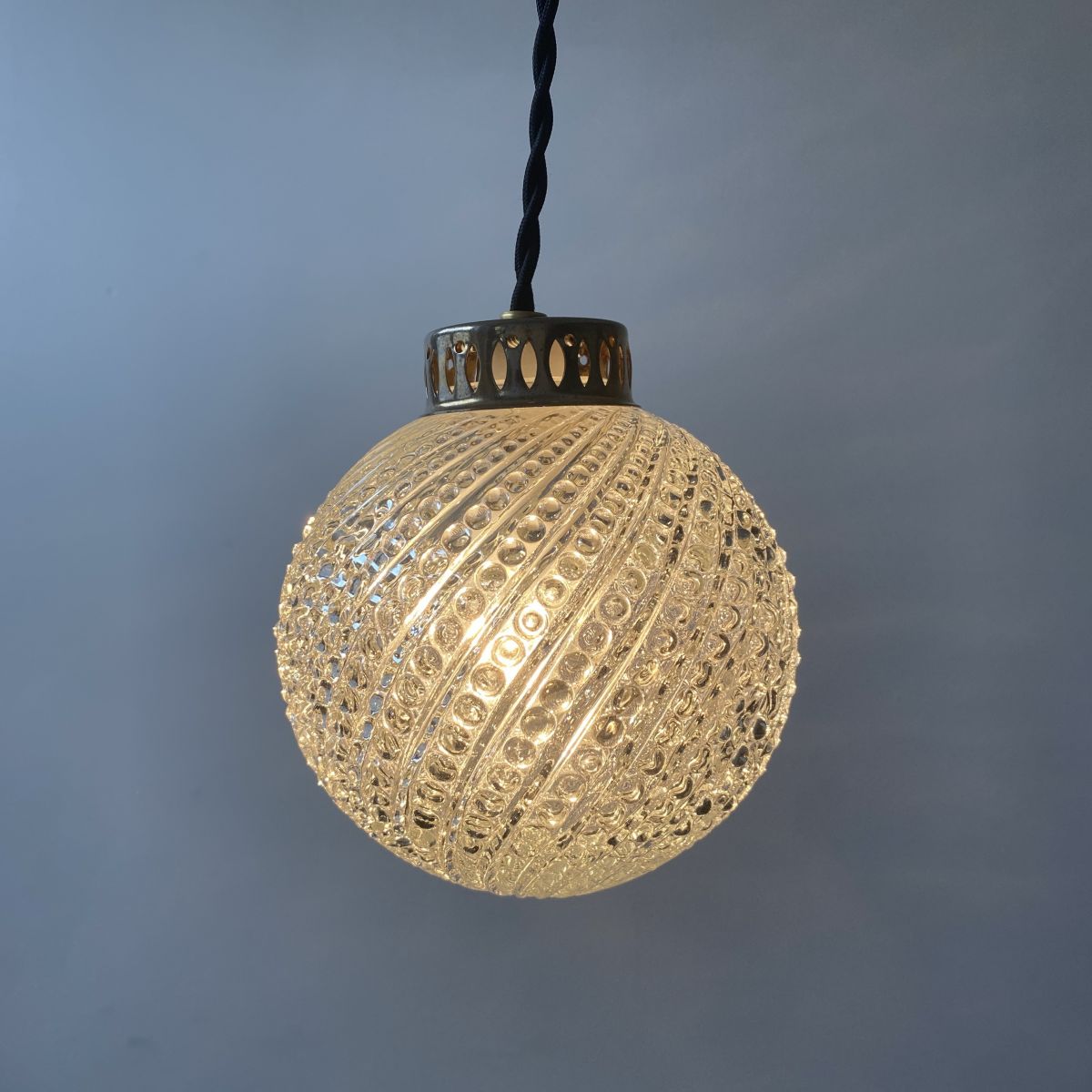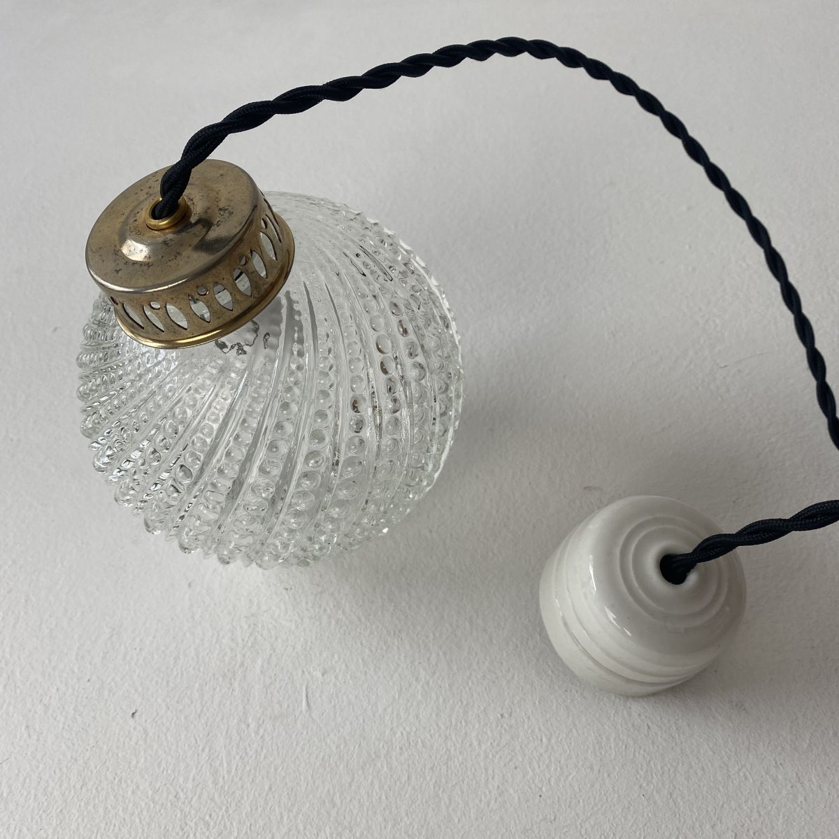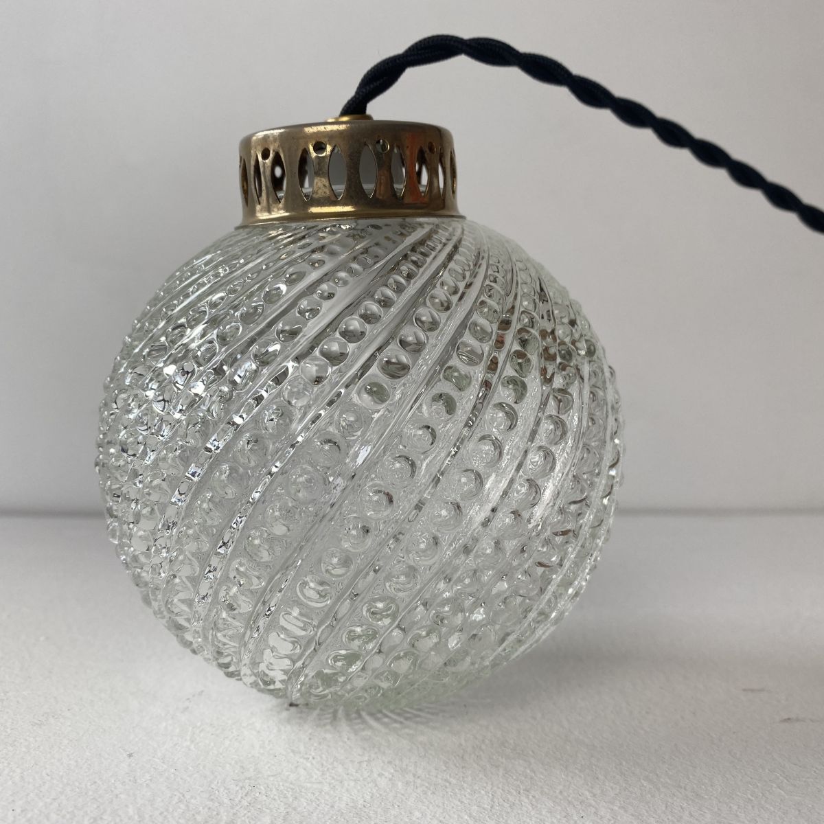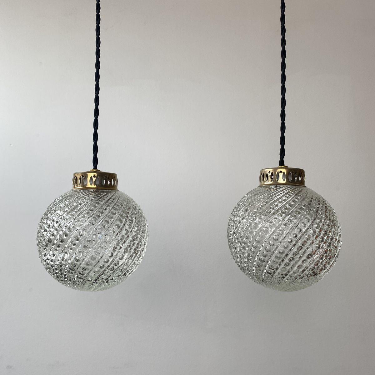 PAIRE D'ANCIENNES SUSPENSIONS VINTAGE RONDES EN VERRE
