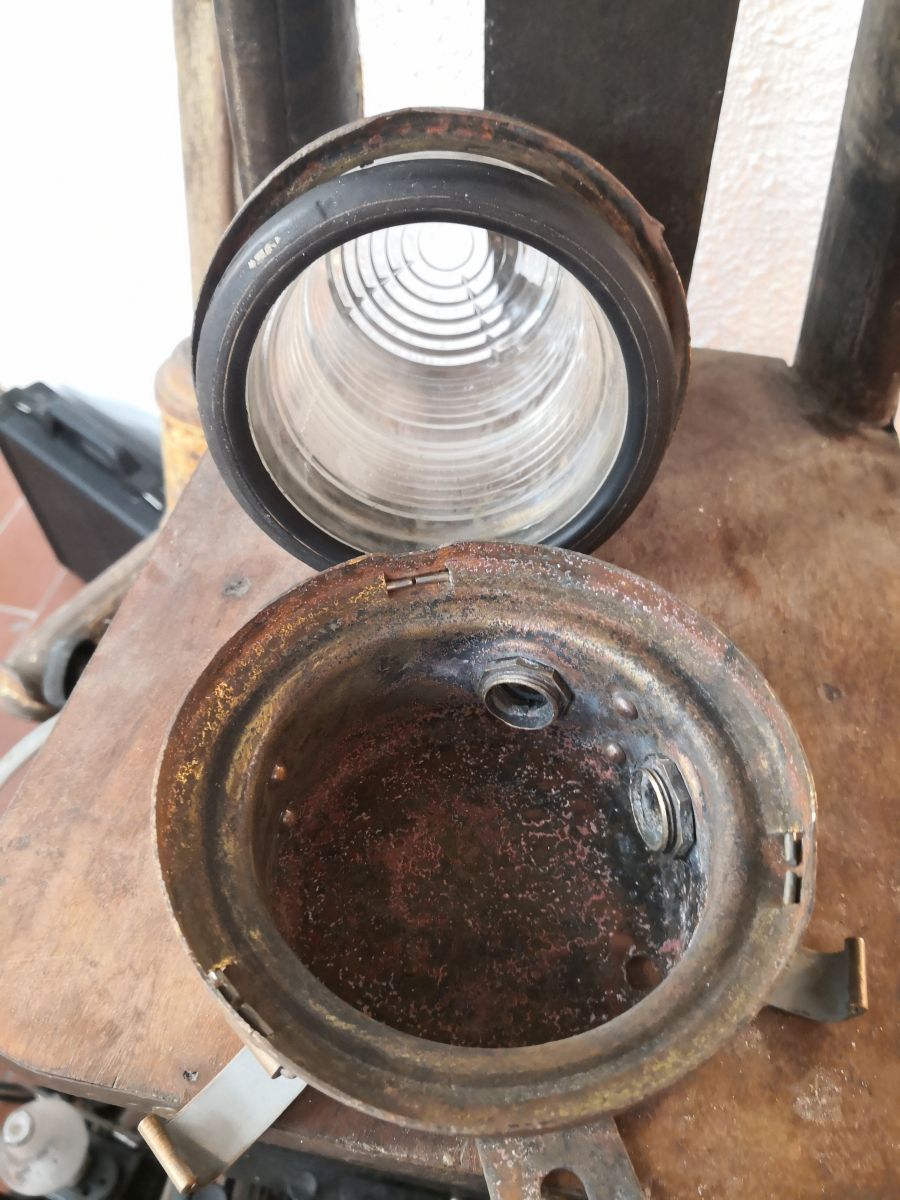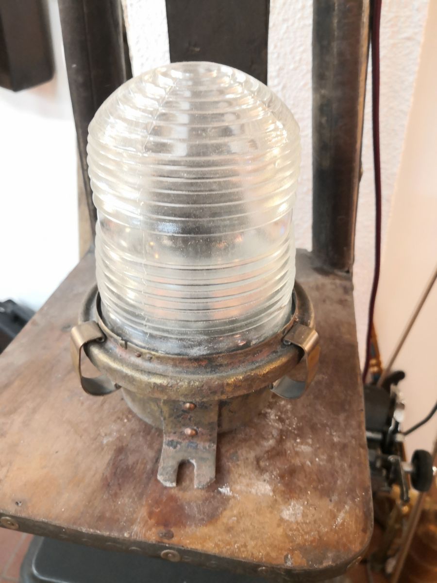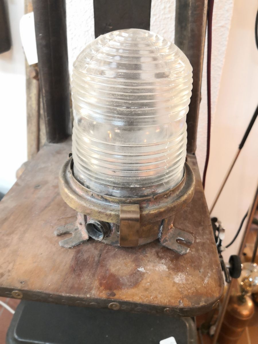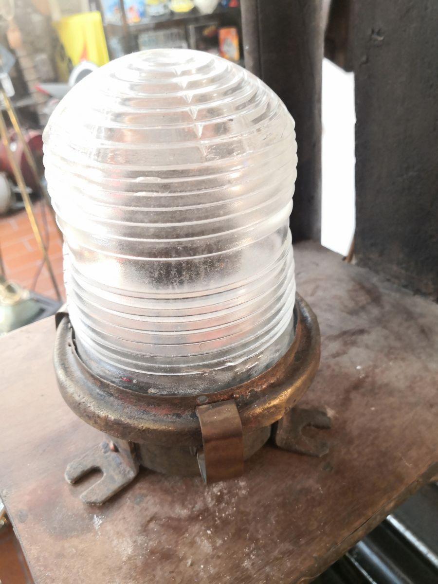 Ancienne lanterne de bateau en laiton et verre blanc.