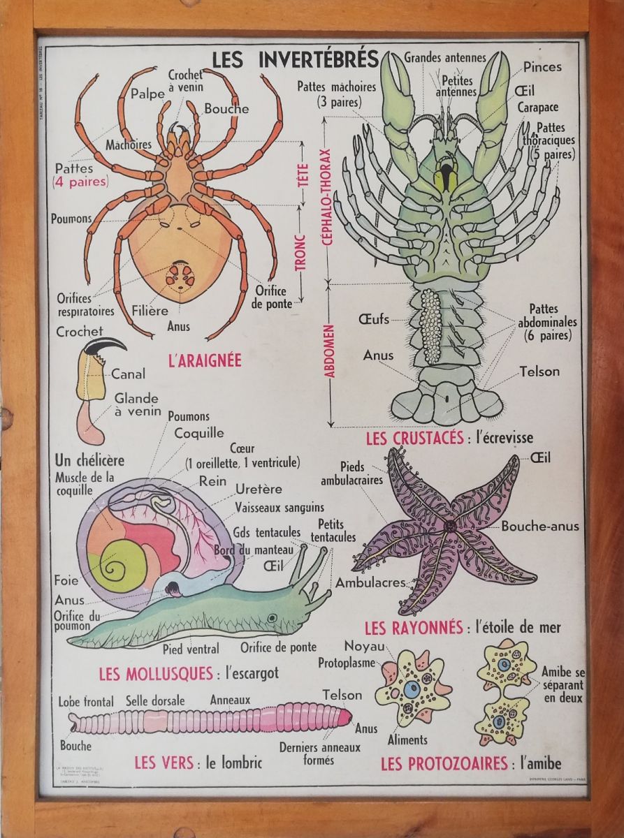 Affiche scolaire vintage mdi: les invertebres / les insectes. La maison des instituteurs saint germain en laye. Très bon état, à noter sur l'une des deux affiches une petite note écrite (voir photo) 90 X 68 cm. Envoi sous rouleau.
