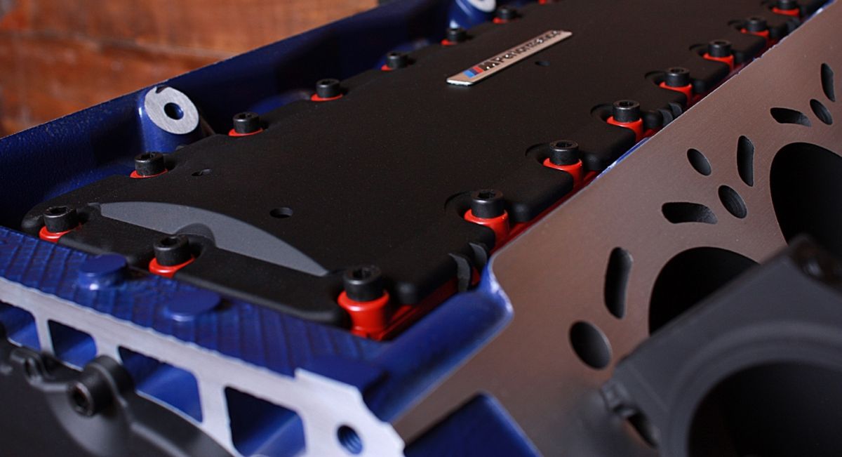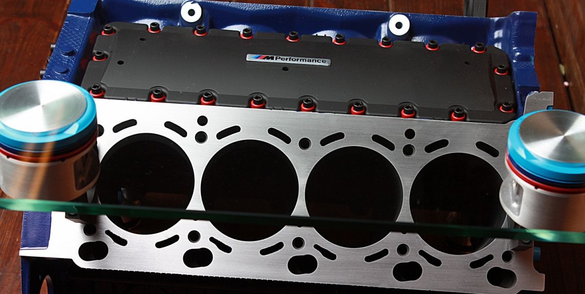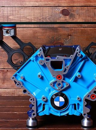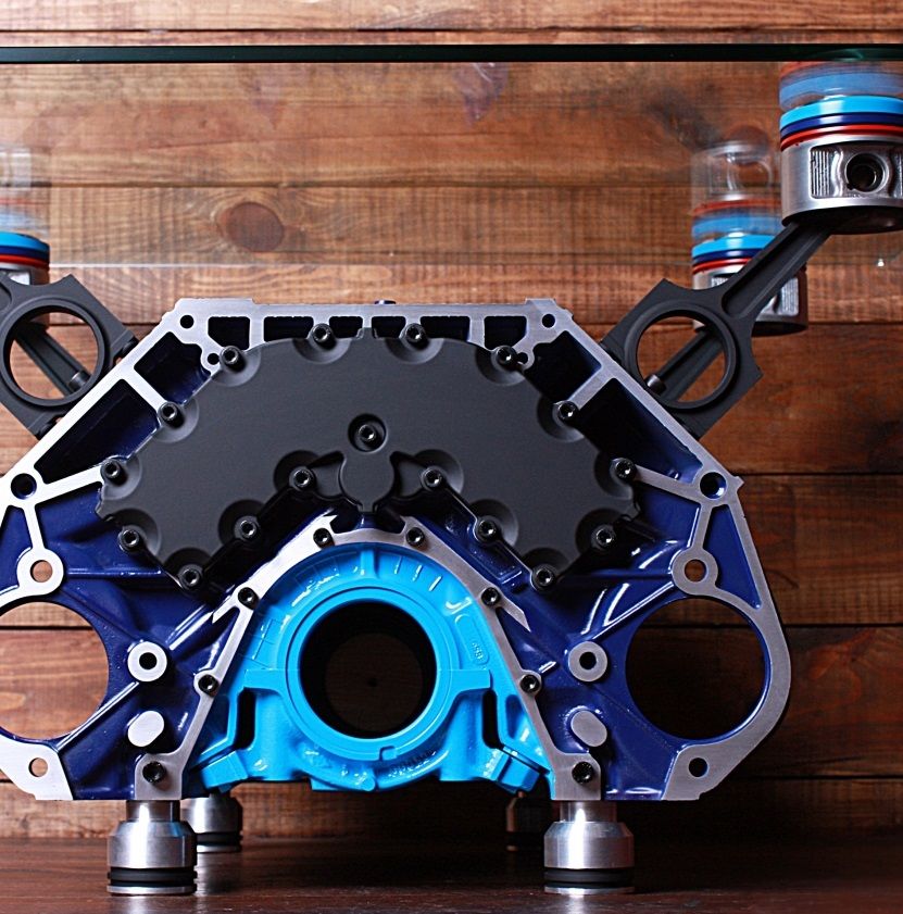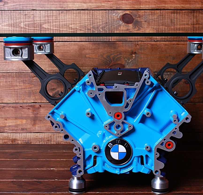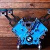 Table moteur V8 BMW, peinte et vernis aux couleurs du préparateur M