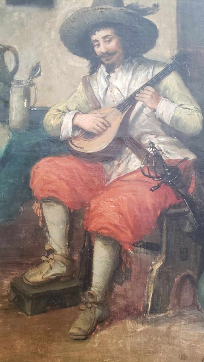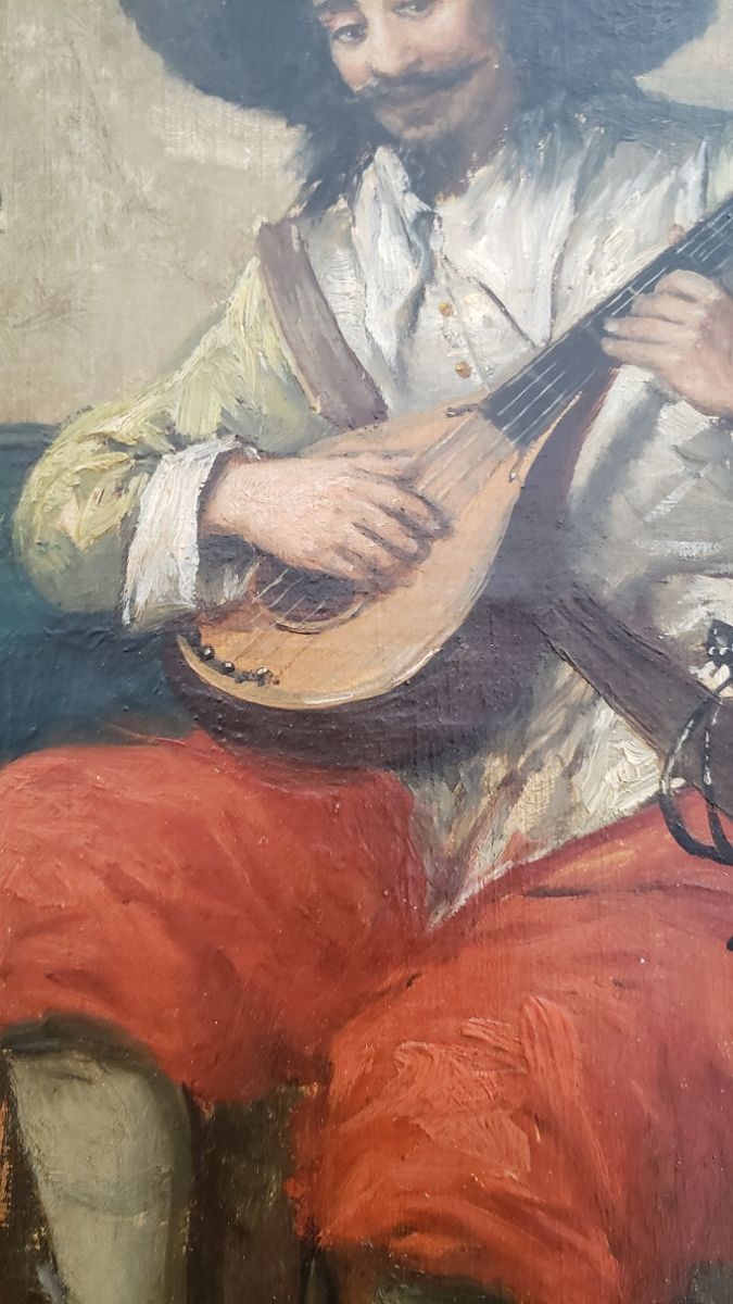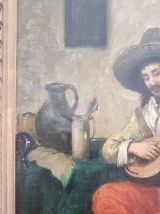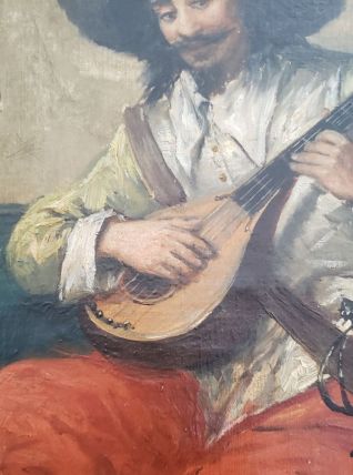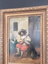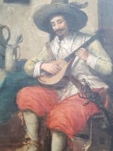 Huile sur toile XIXème"Le troubadour à la mandoline"