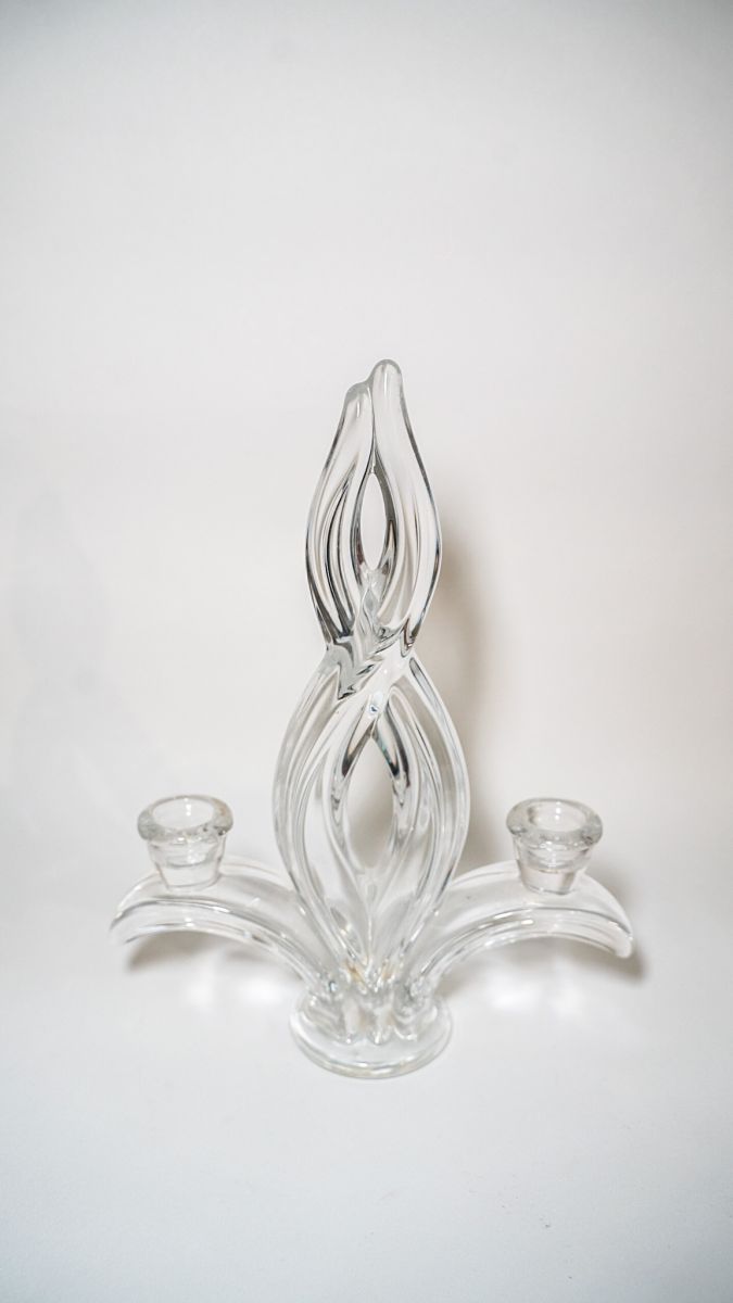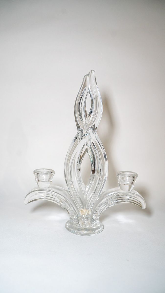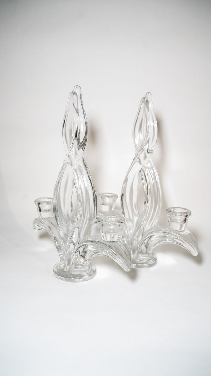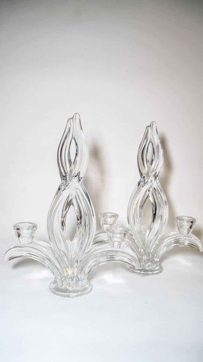 Paire de chandeliers vintages en cristal de Vannes années 60