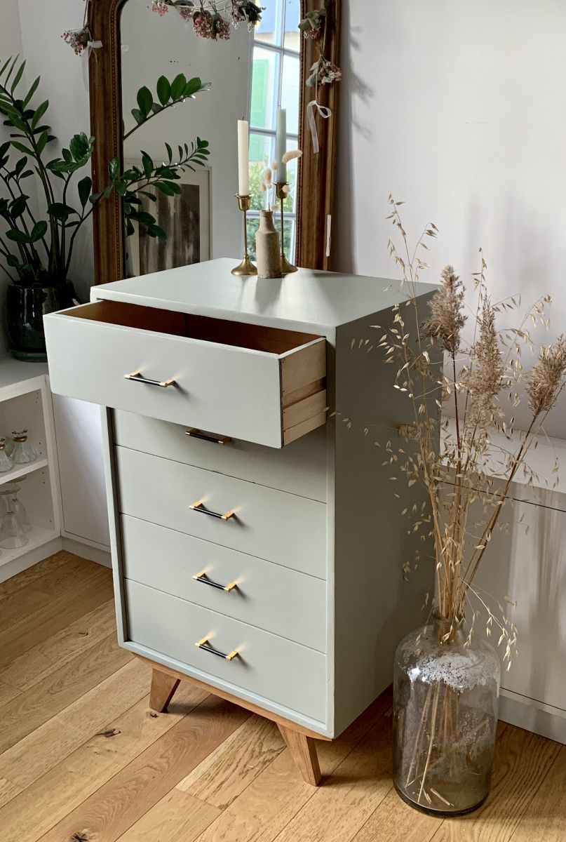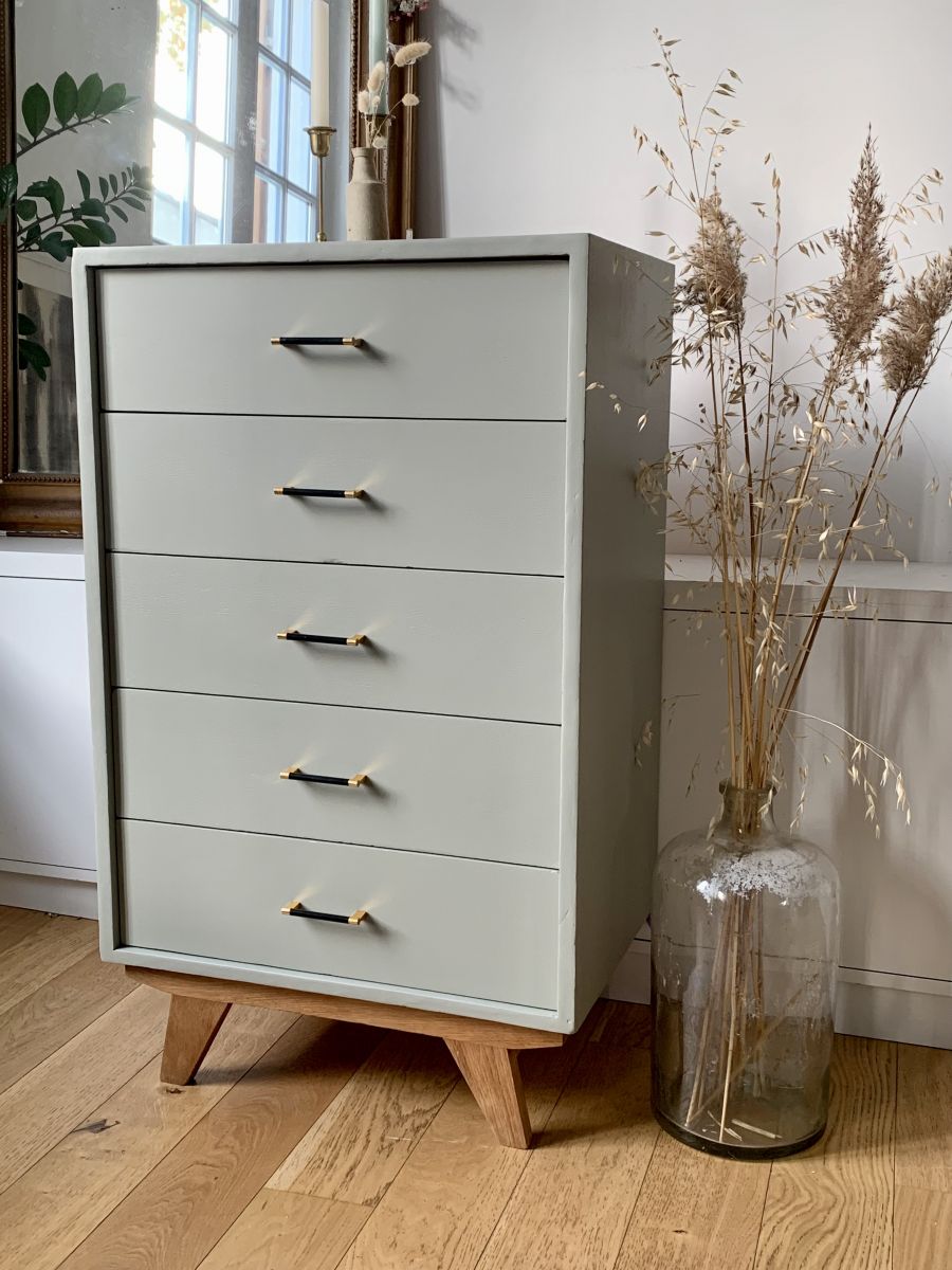 Charmant et élégant chiffonnier des années 60 avec de jolis pieds compas.
