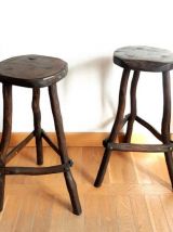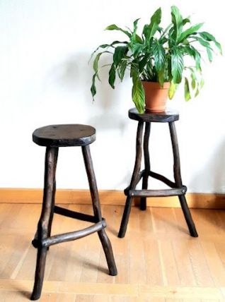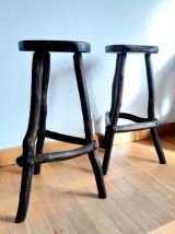 Paire de tabourets en bois brutaliste