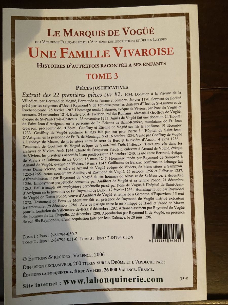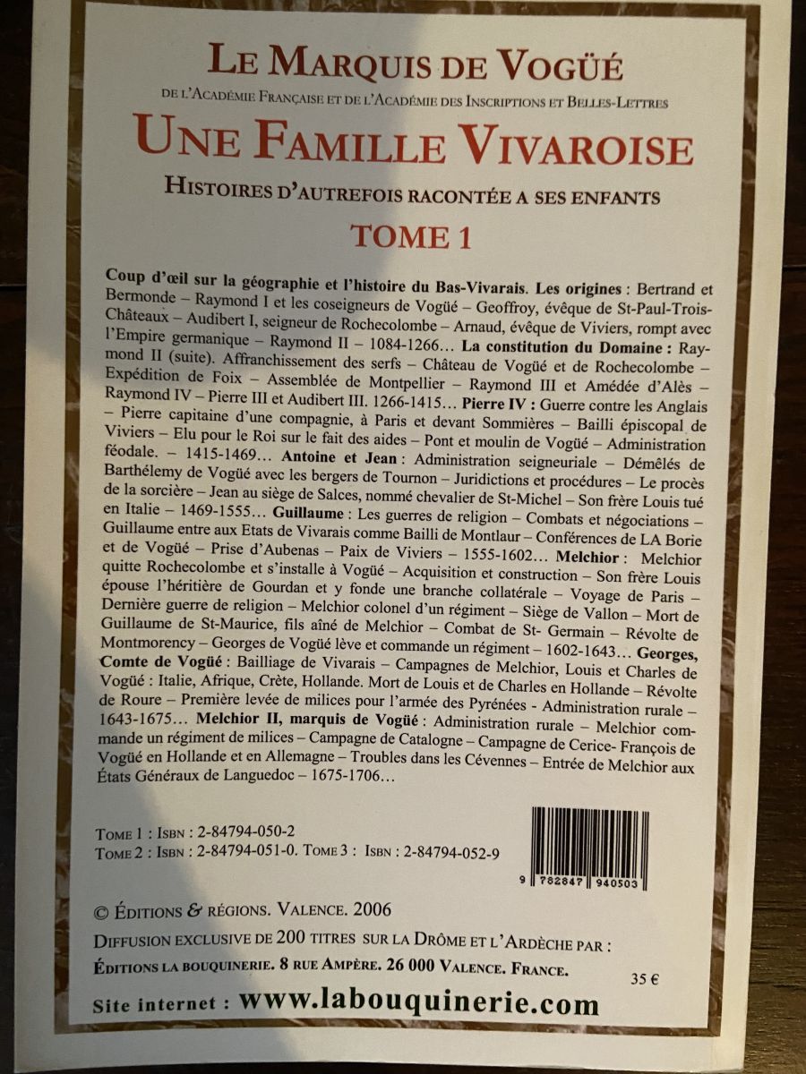 Lot des Trois Tomes d'"Une Famille Vivaroise"