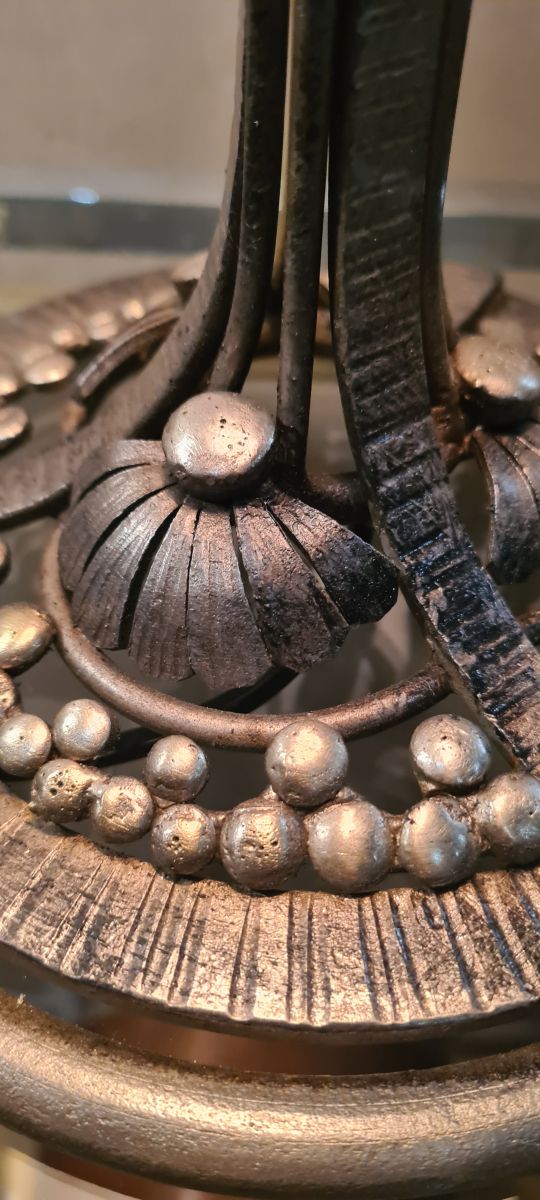 gros travail fer forgé nickelé globe opaline marbré