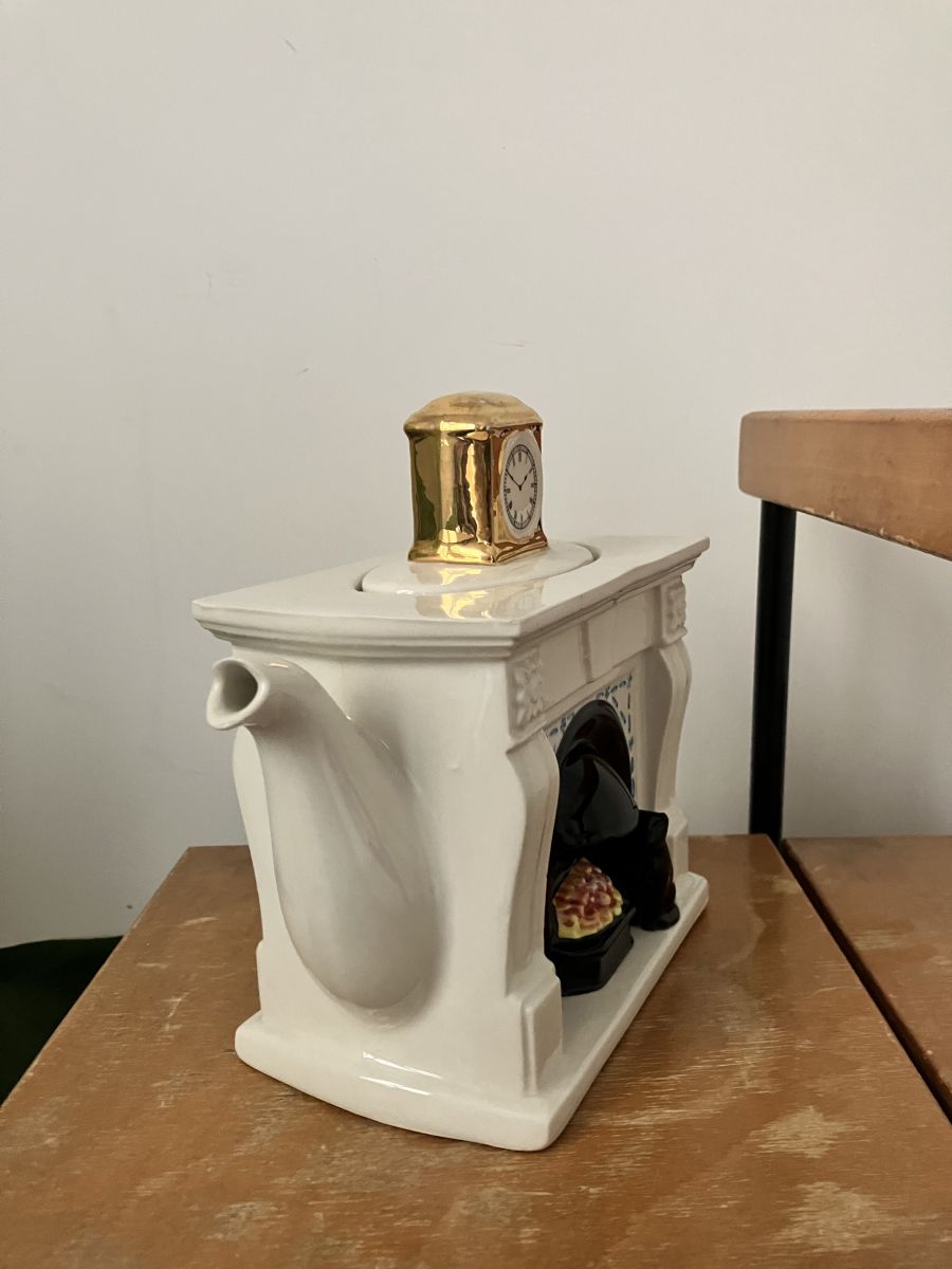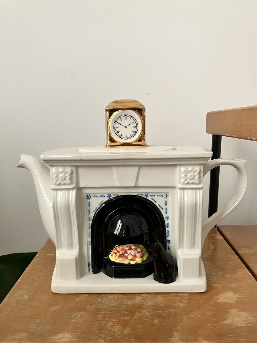 Théière de collection anglaise, objet rare, effet kitsch assuré ! La cheminée est taillée des deux côtés de l'objet