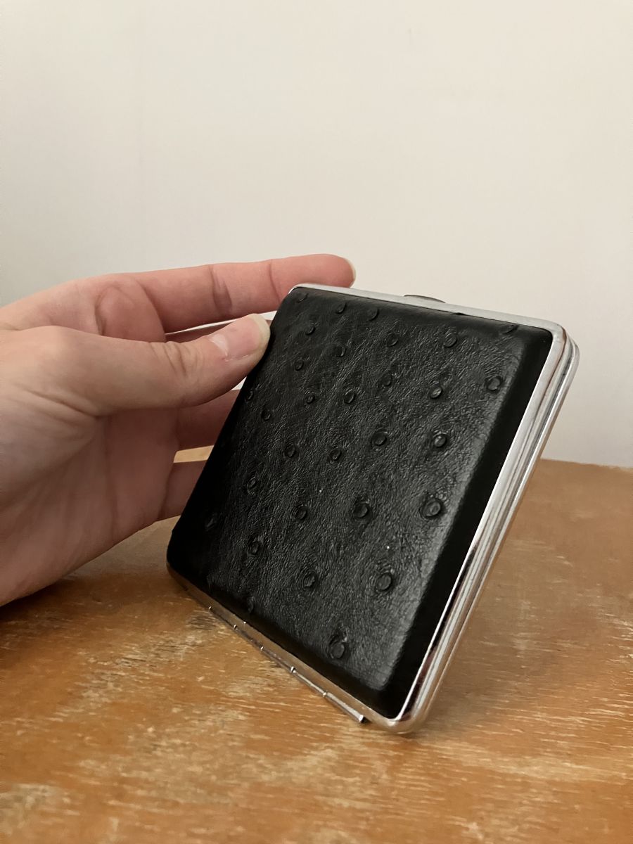 Étui à cigarettes vintage, très bon état, imitation cuir d'autruche.