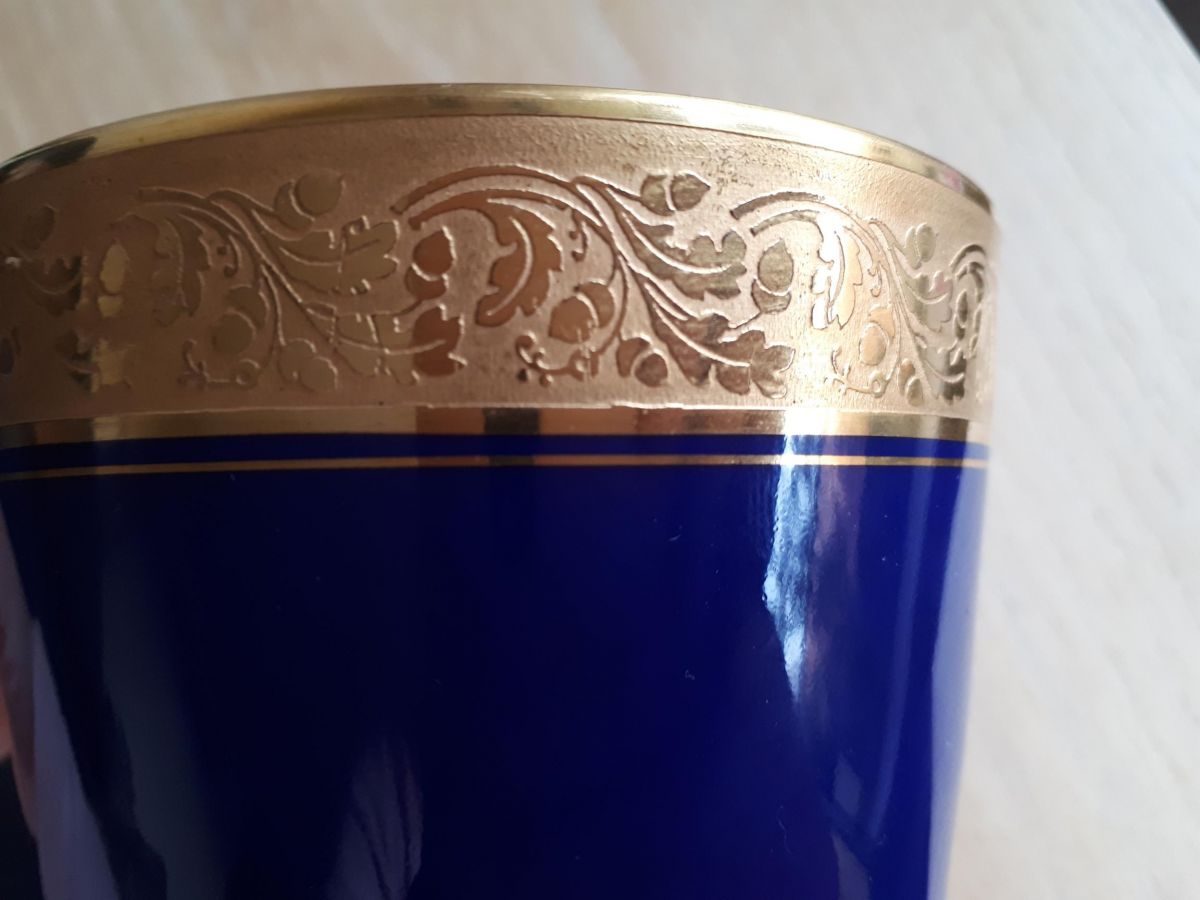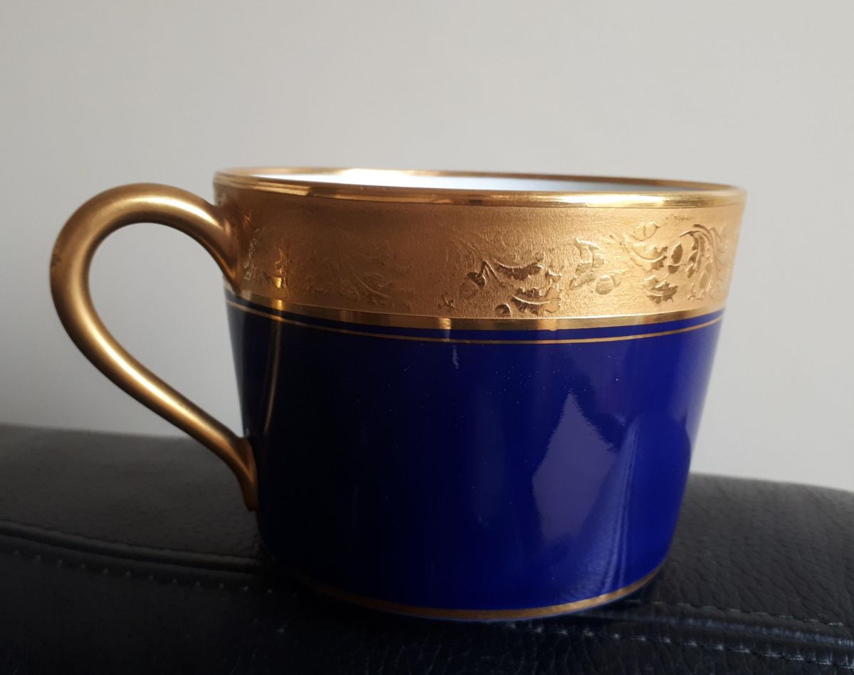 Tasse à chocolat, jamais servie, bleu de four et liseré or.