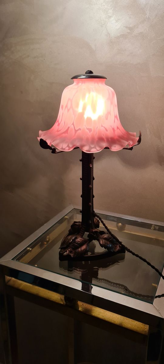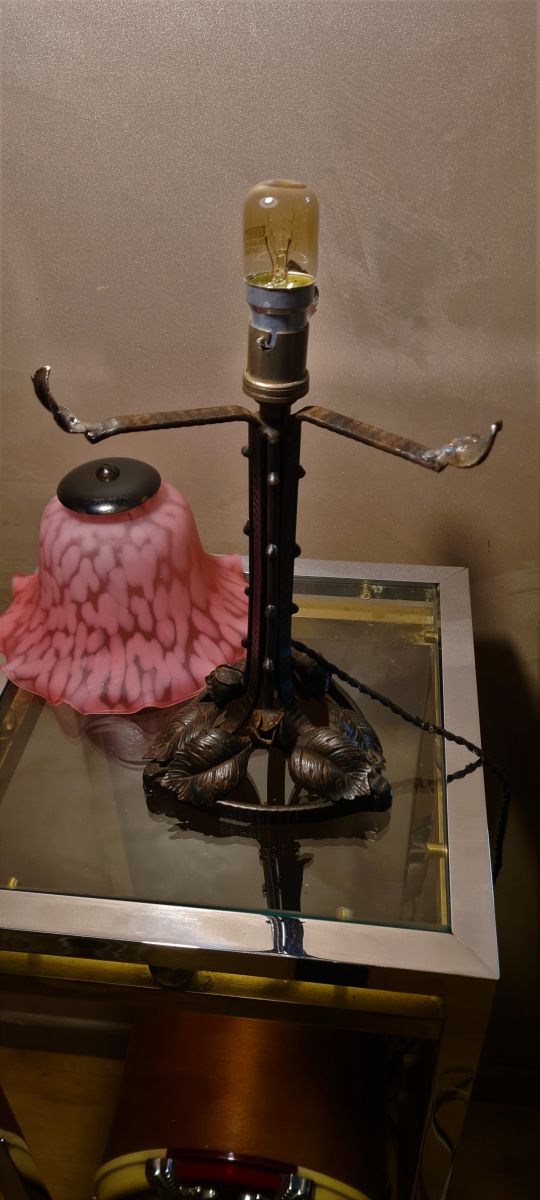 lampe fer forgé 1920 a40 tres beau travail , avec jolie tul