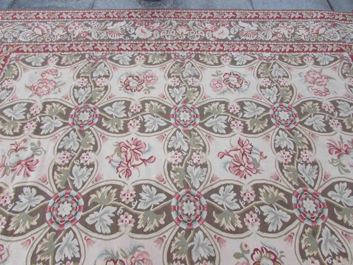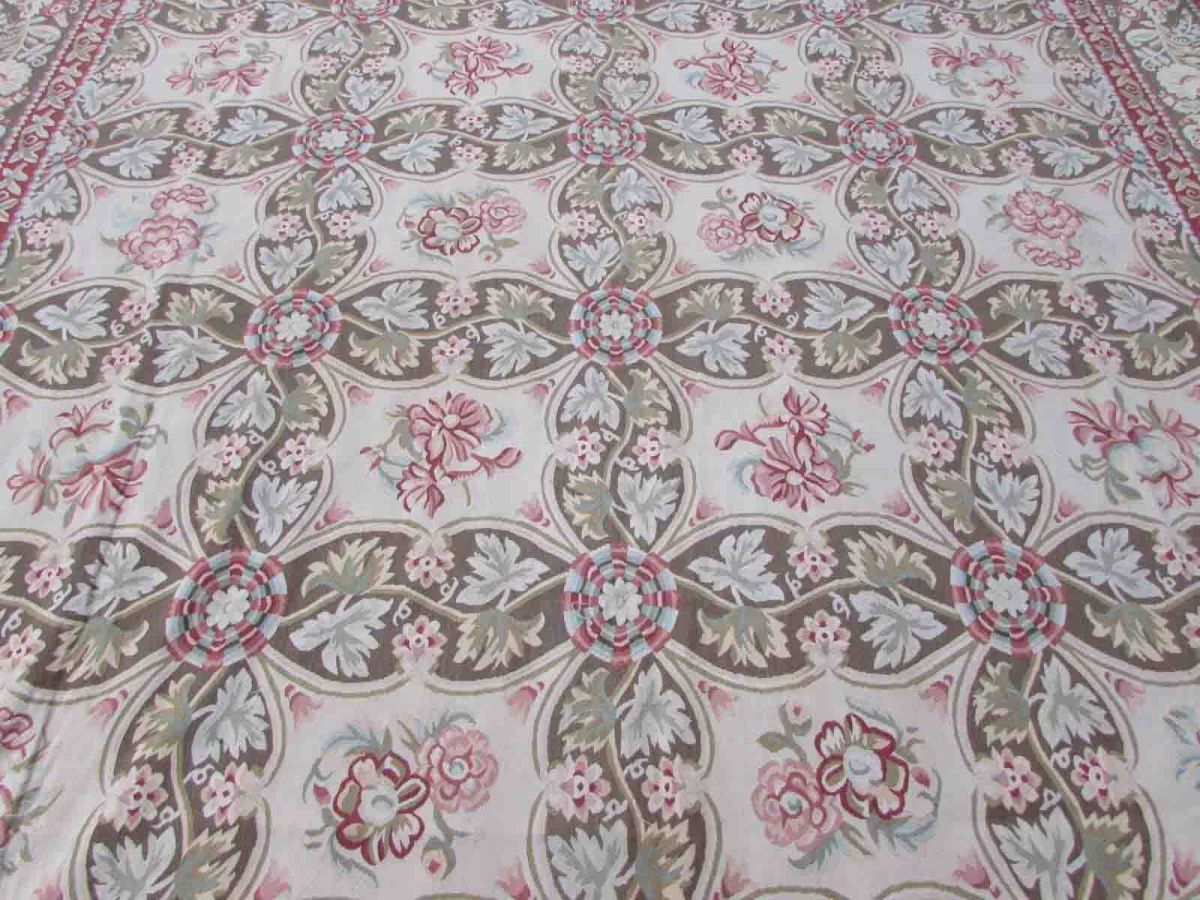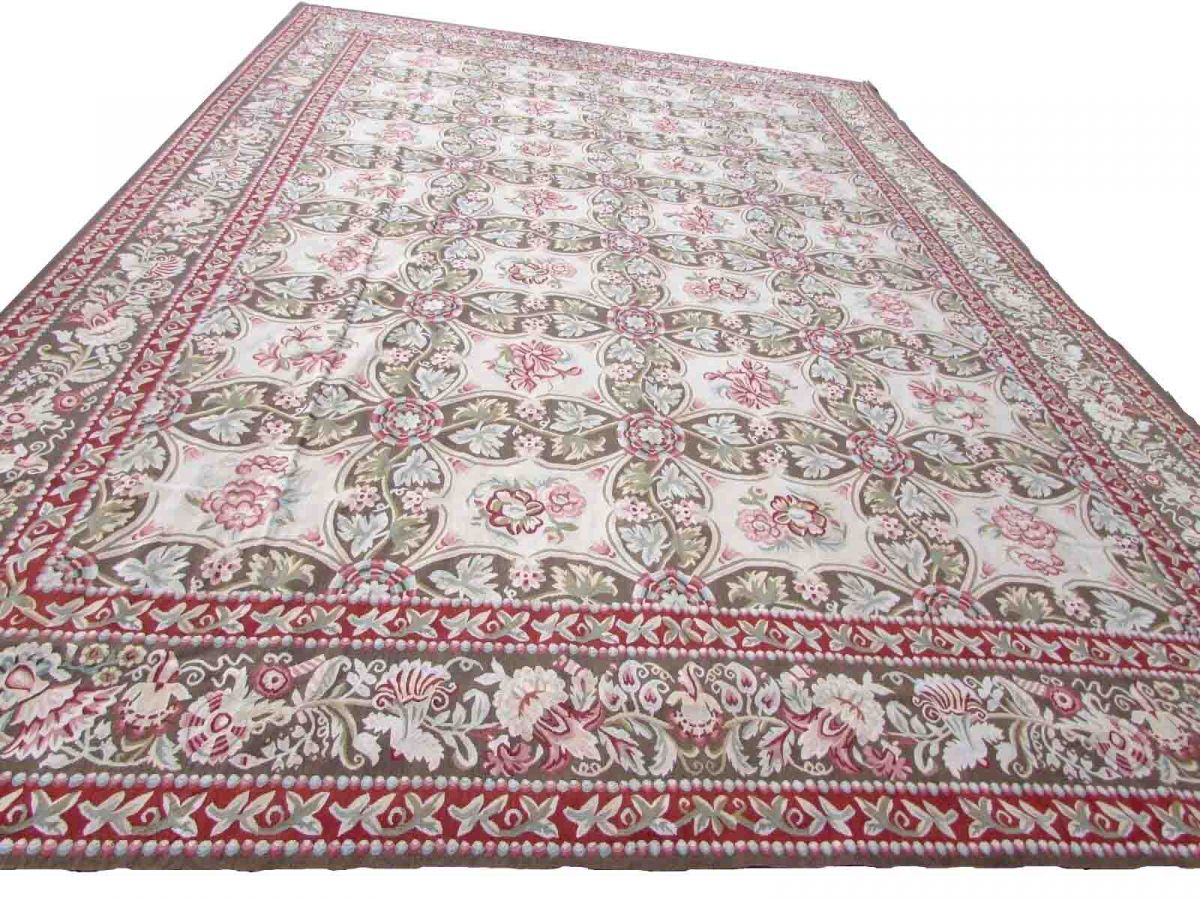 Handmade vintage French Aubusson rug in traditional design. The rug is from the end of 20th century in original good condition.