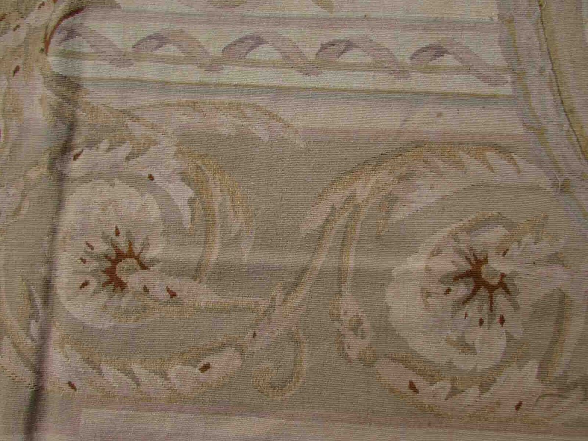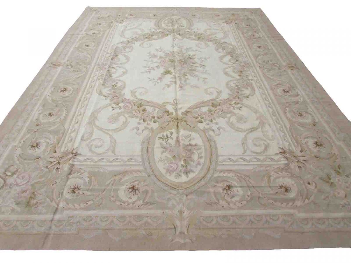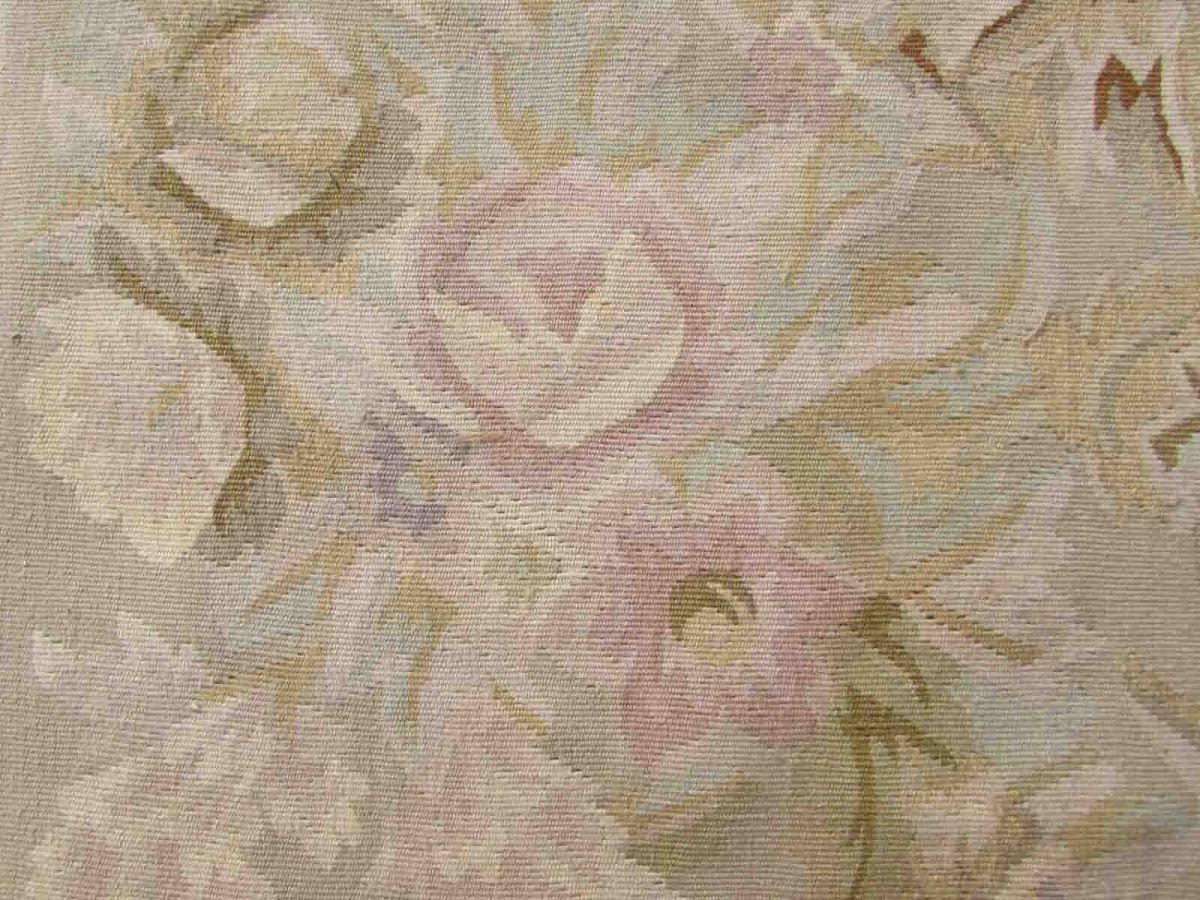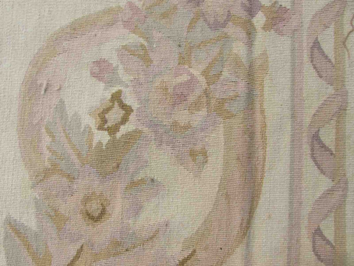 Handmade vintage French Aubusson rug in traditional design and pastel shades. The rug is from the end of 20th century in original good condition.