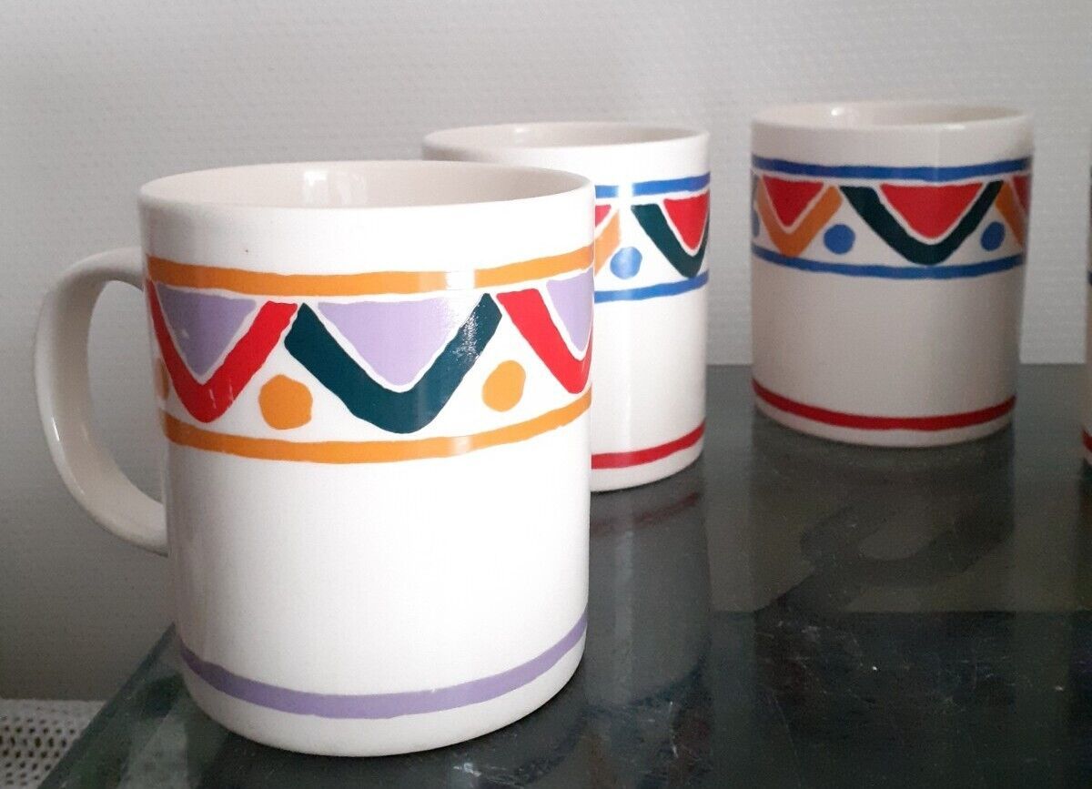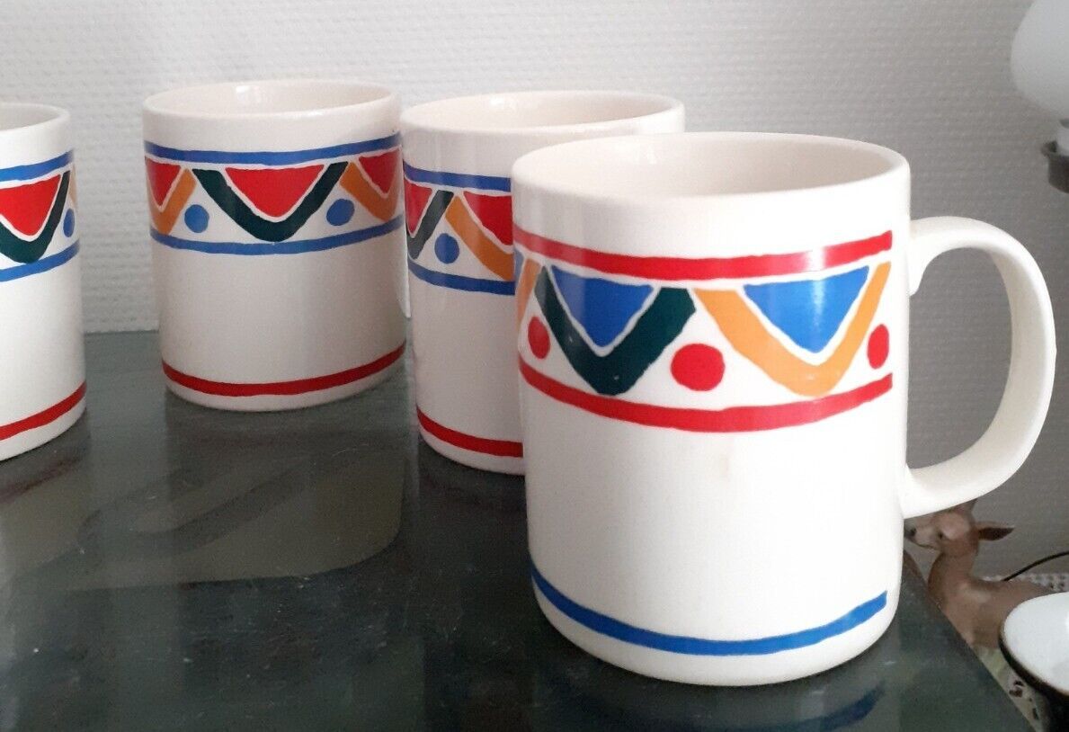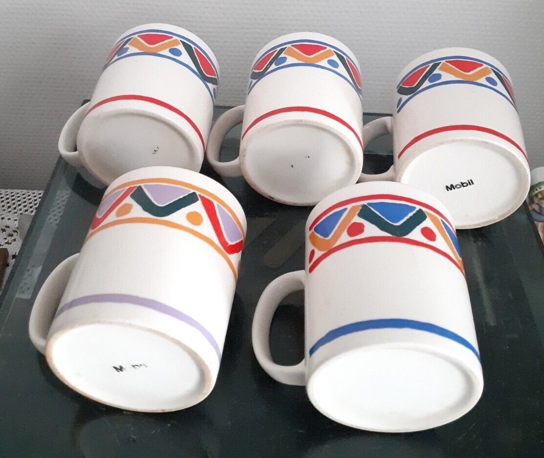 5 Tasses/ Mugs Mobil arcopal. Années 70.
