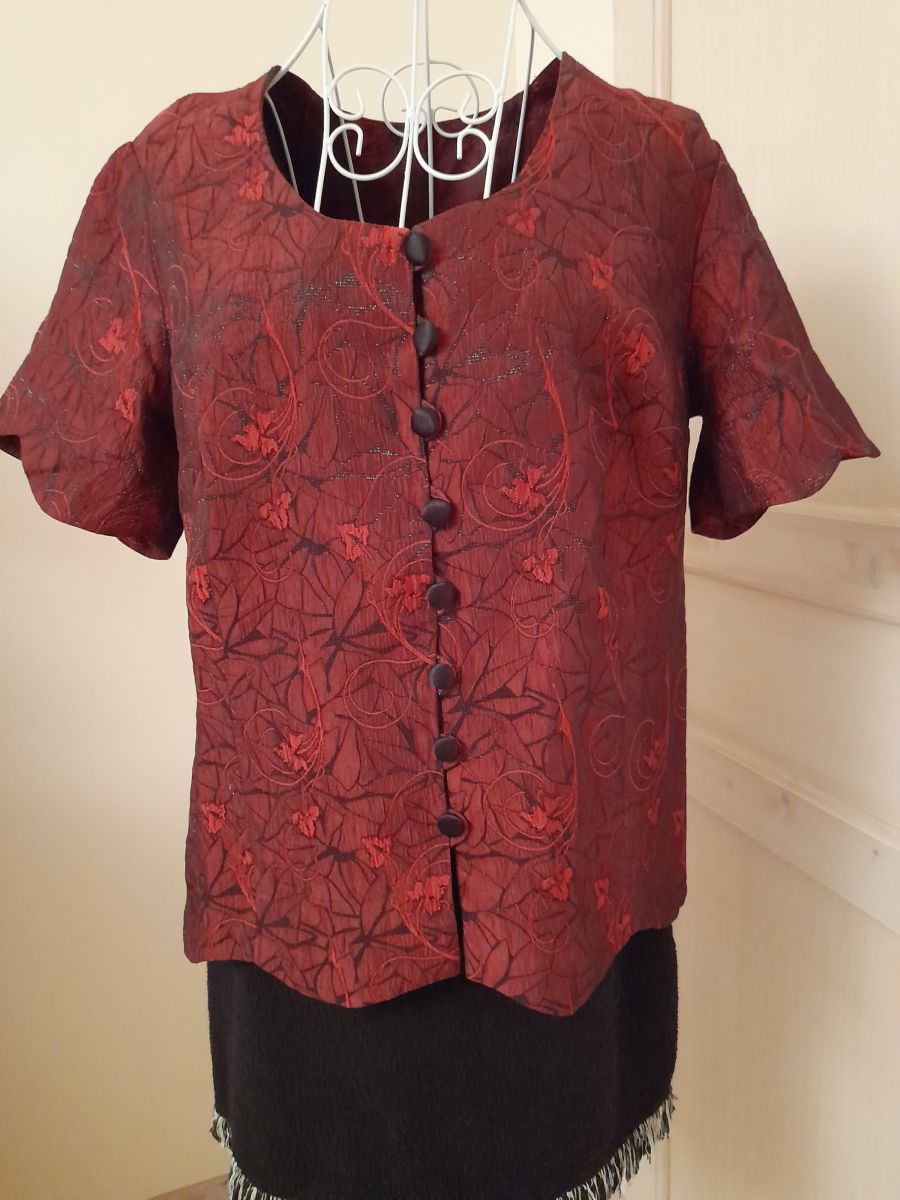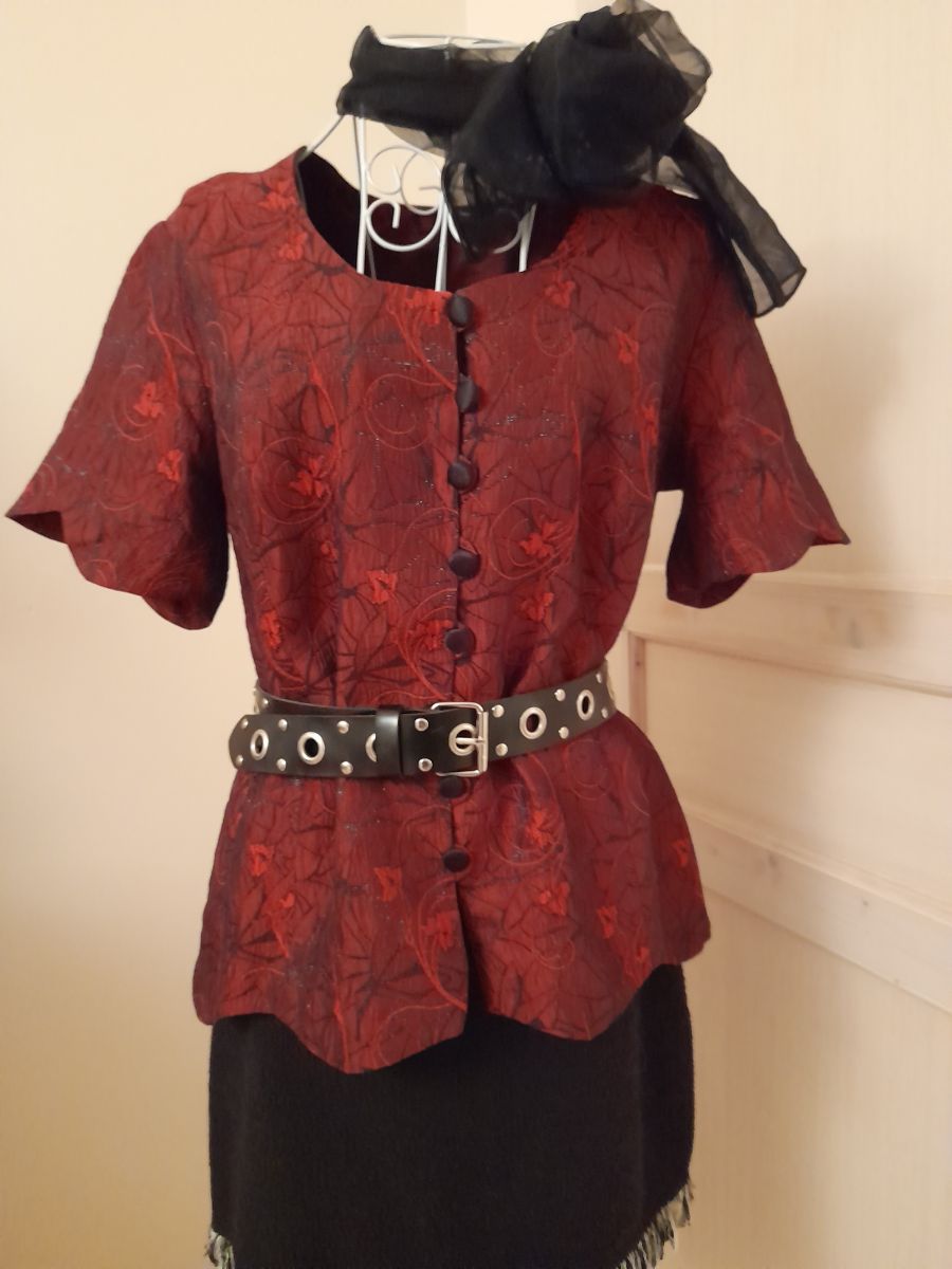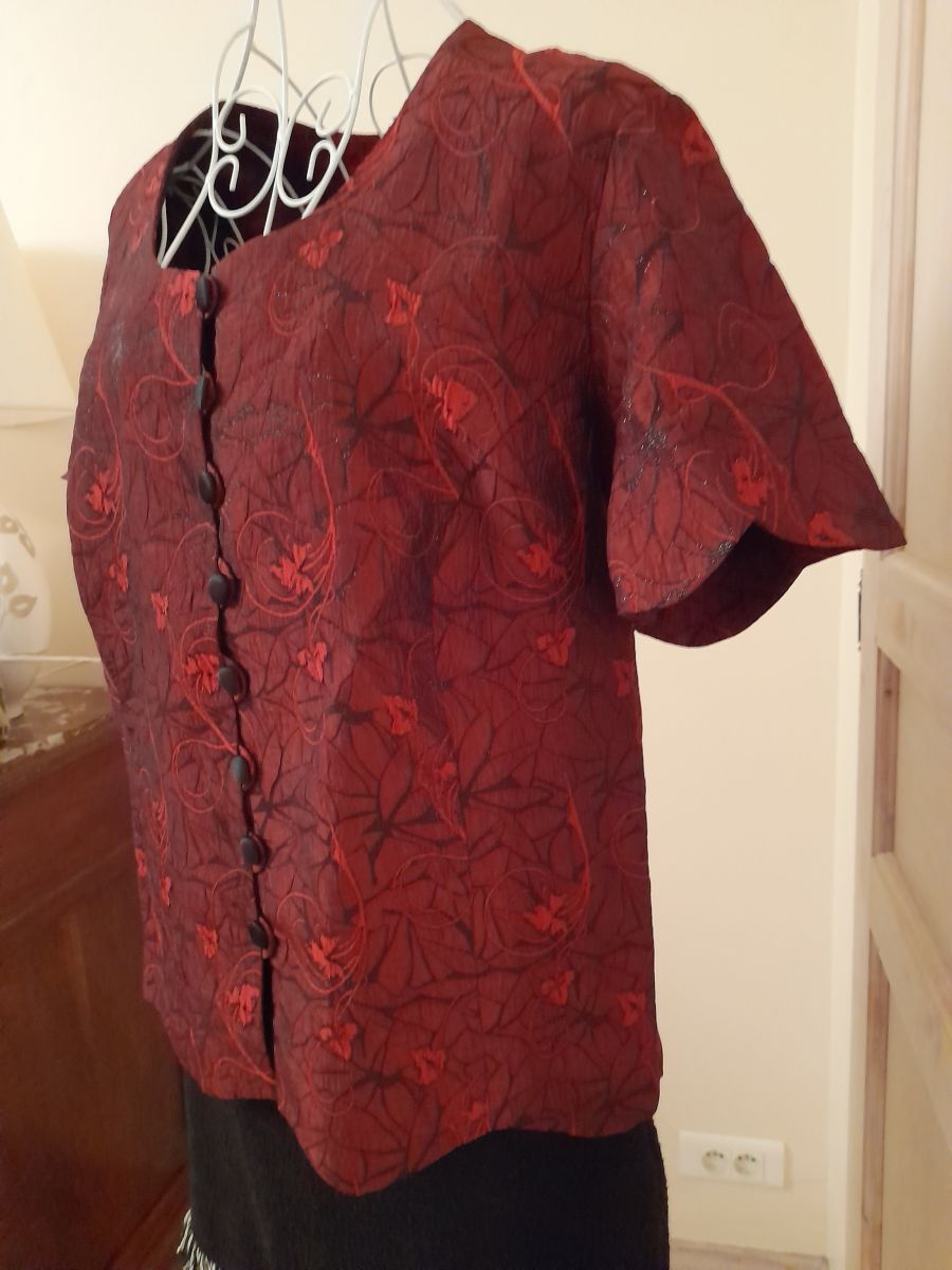 veste ou blouse, comme neuve, fermée tout le long devant avec des boutons recouverts de tissu, bout de manches découpées en forme de tulipe
