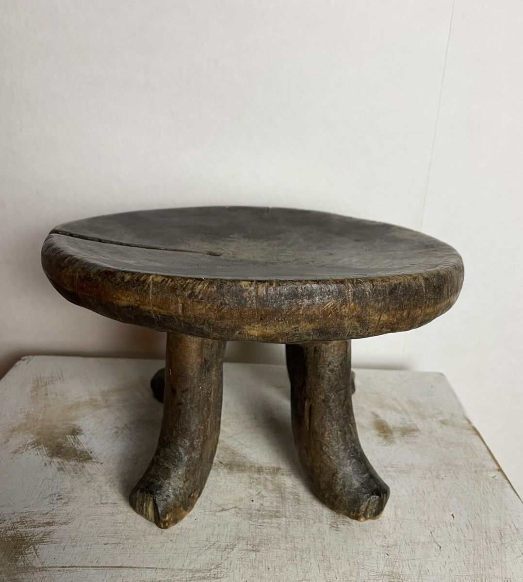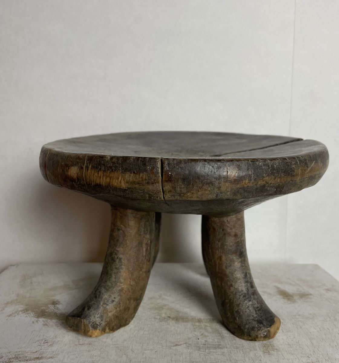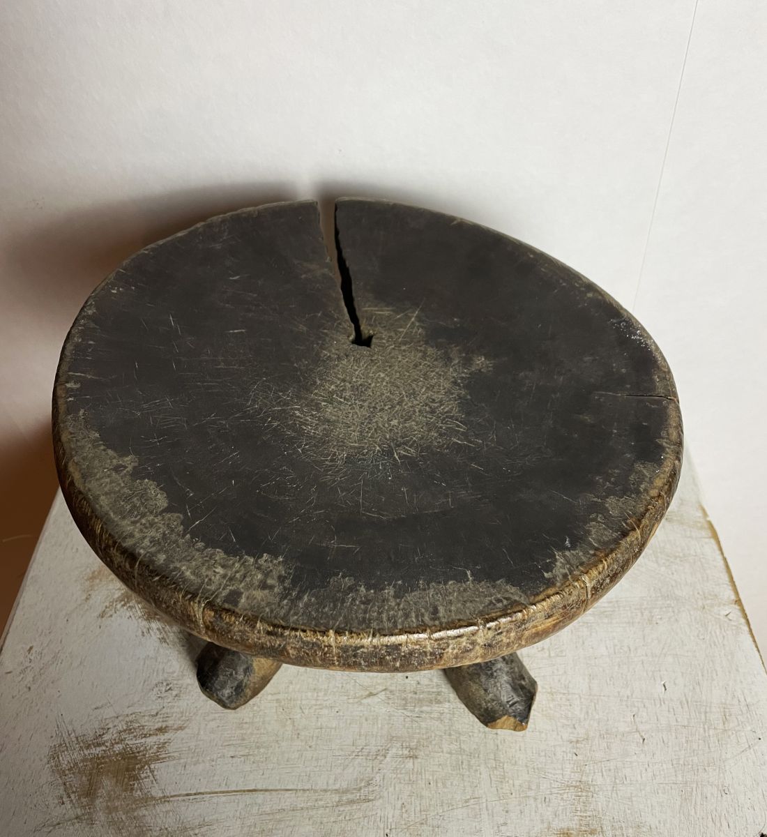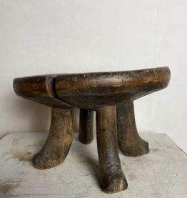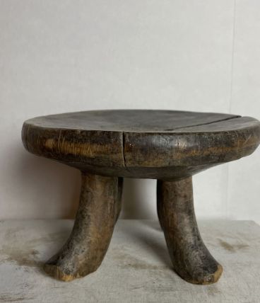 Petit tabouret ancien venant d'Afrique à utiliser en sellette, diamètre du plateau 25 cm.