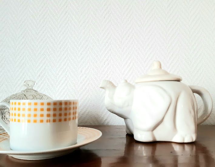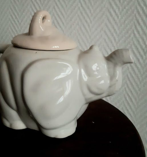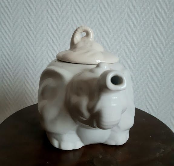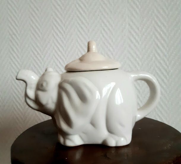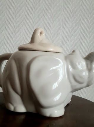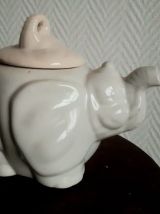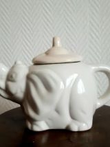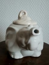 Théière en céramique formant un éléphant. Modèle vintage à émaillage épais blanc. Un détail kitsch qui détonnera pour vos pauses thé !