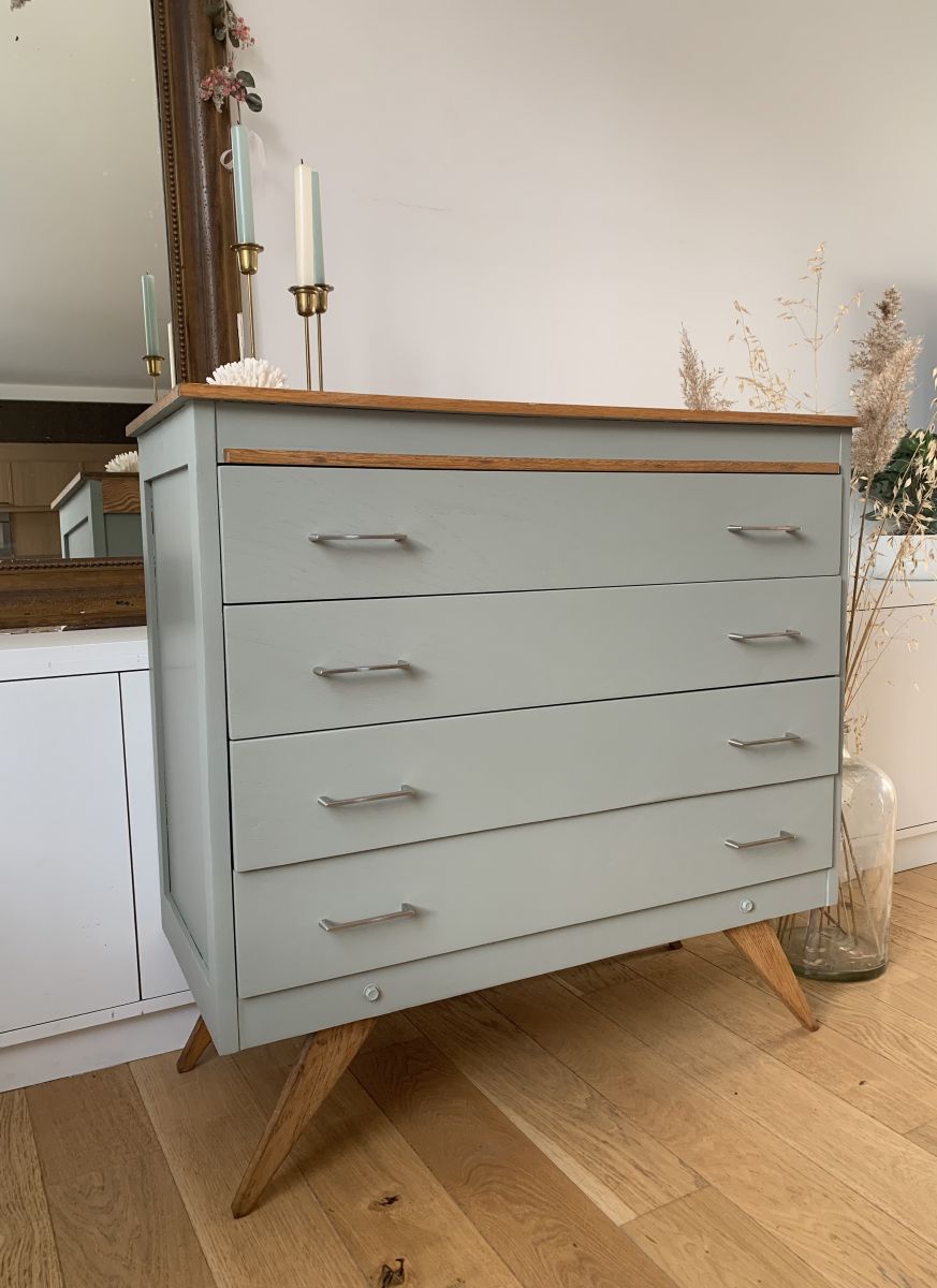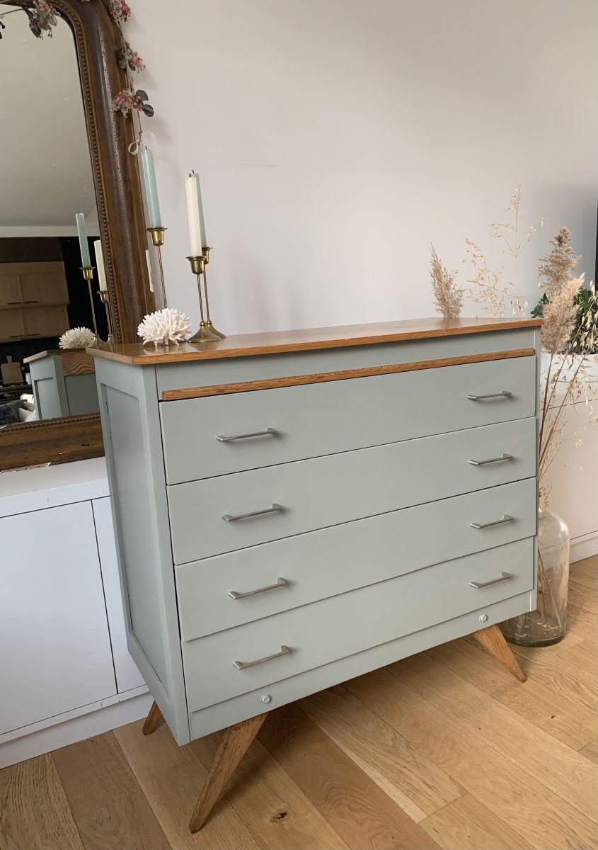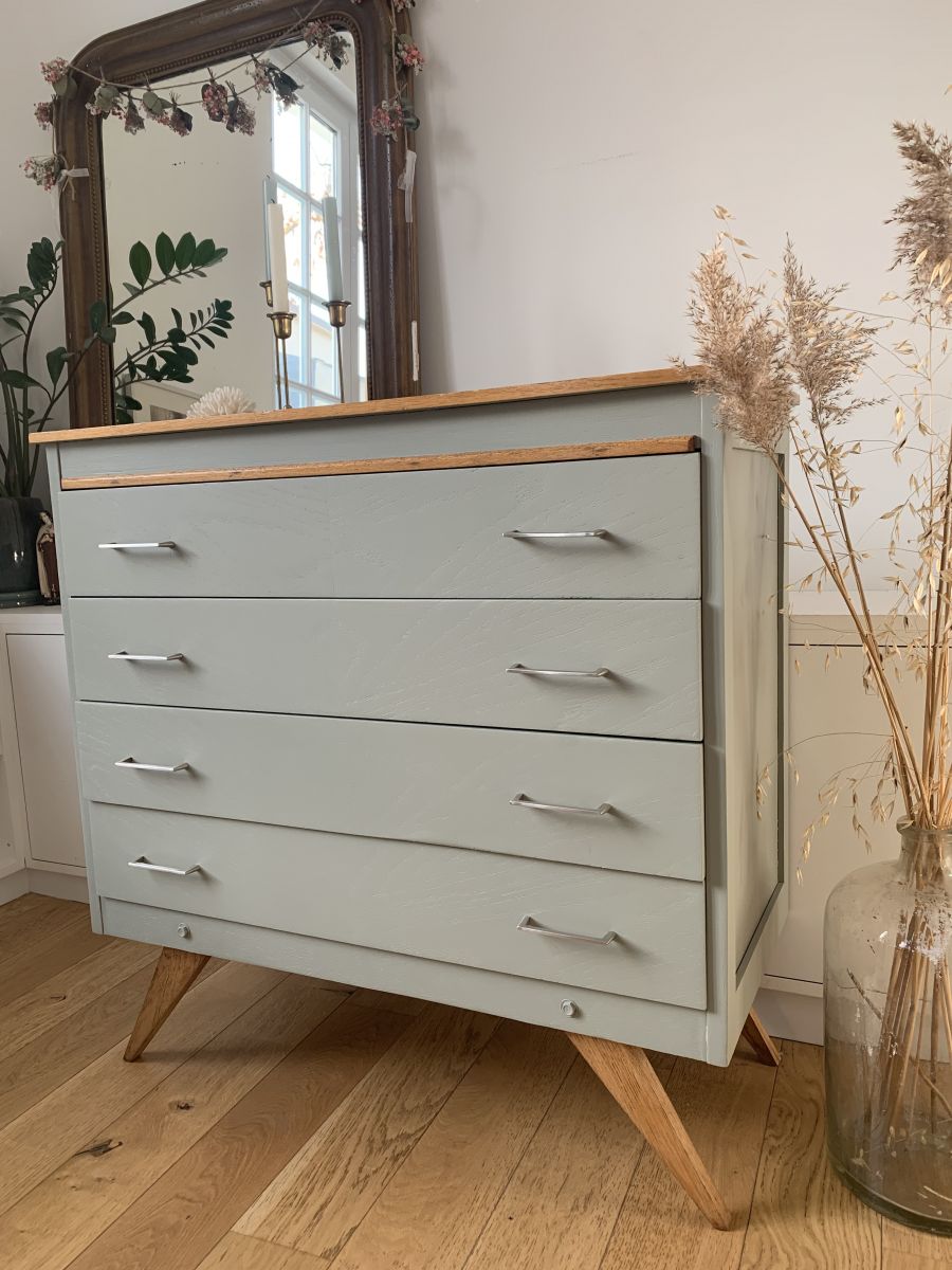 Elégante commode vintage des années 60 avec de jolis pieds compas.